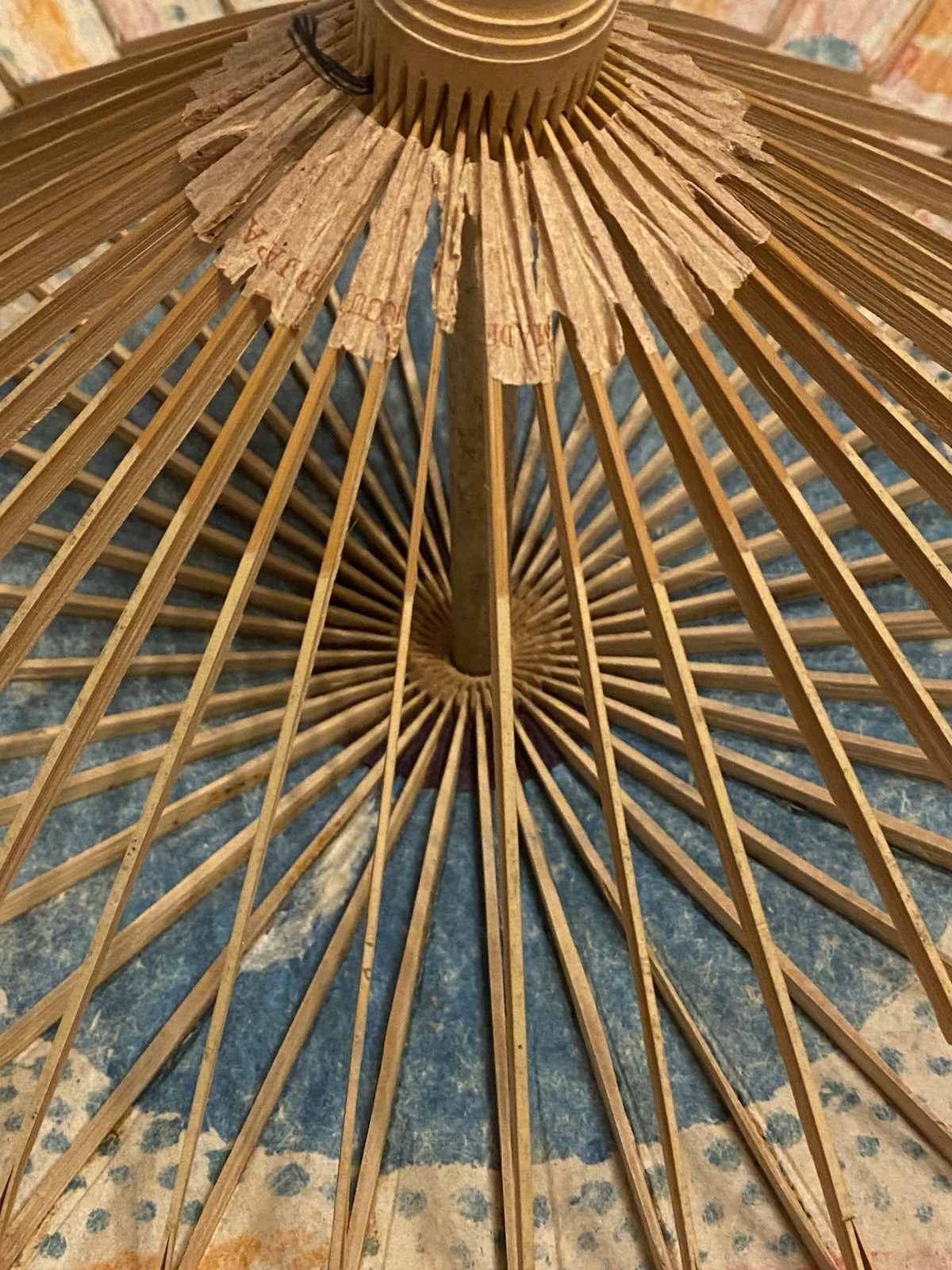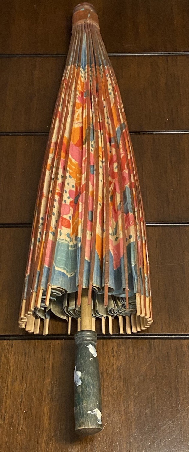 как выглядит Vintage 1940s Occupied Japan Handmade Bamboo / Paper Floral Umbrella фото