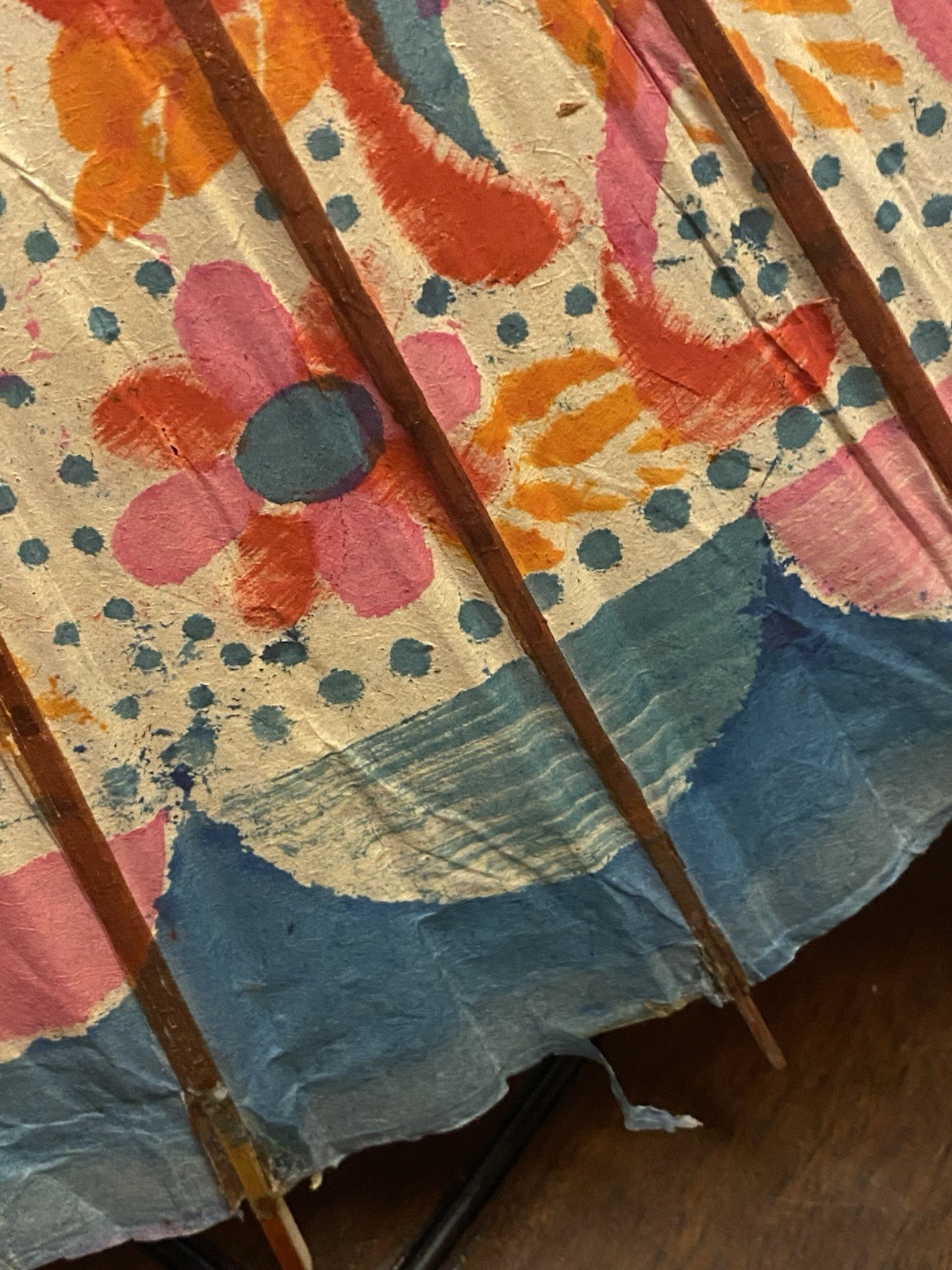 Vintage 1940s Occupied Japan Handmade Bamboo / Paper Floral Umbrella