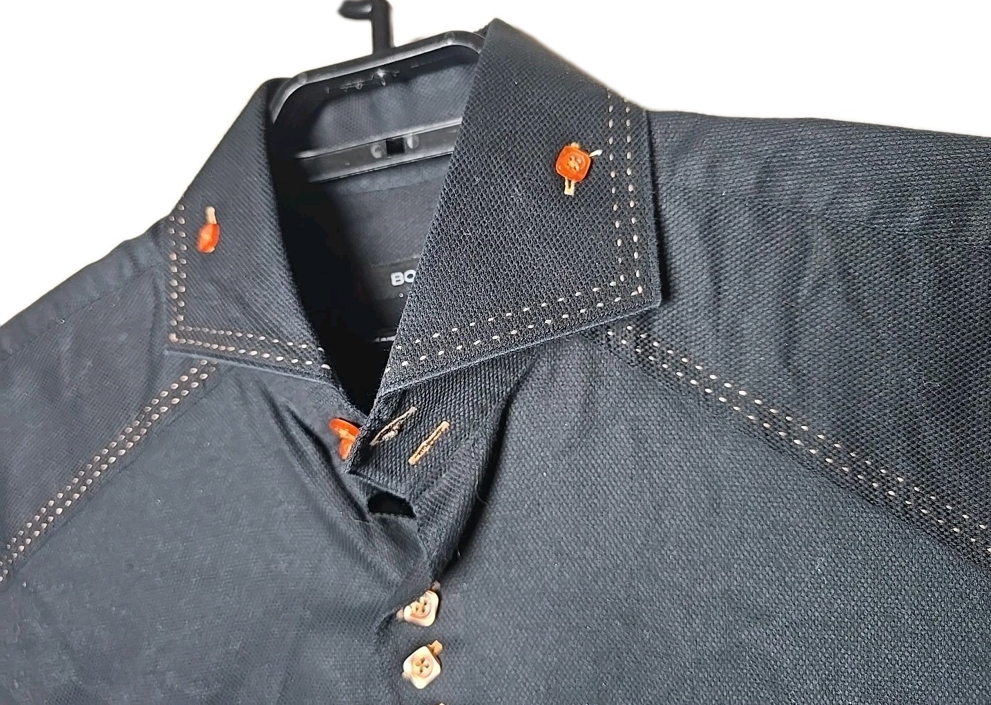 как выглядит Bogosse Men s Shirt Size 5 XL Black Brown Stitch Trim Button Up t9 фото