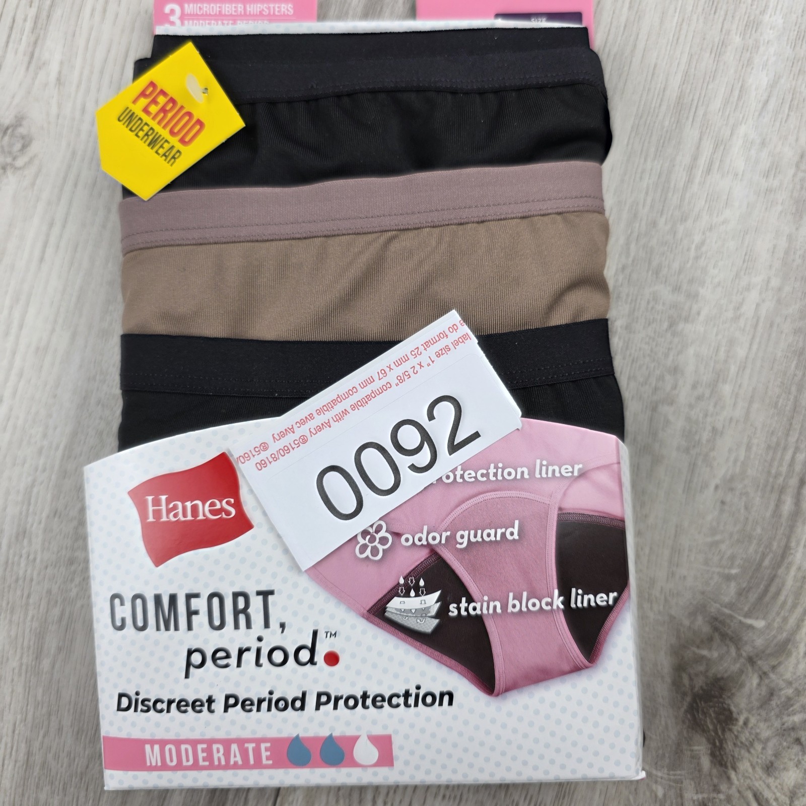Hanes 3-Pack Panties Womens 9/2XL Period Protection Briefs Moderate Absorbent