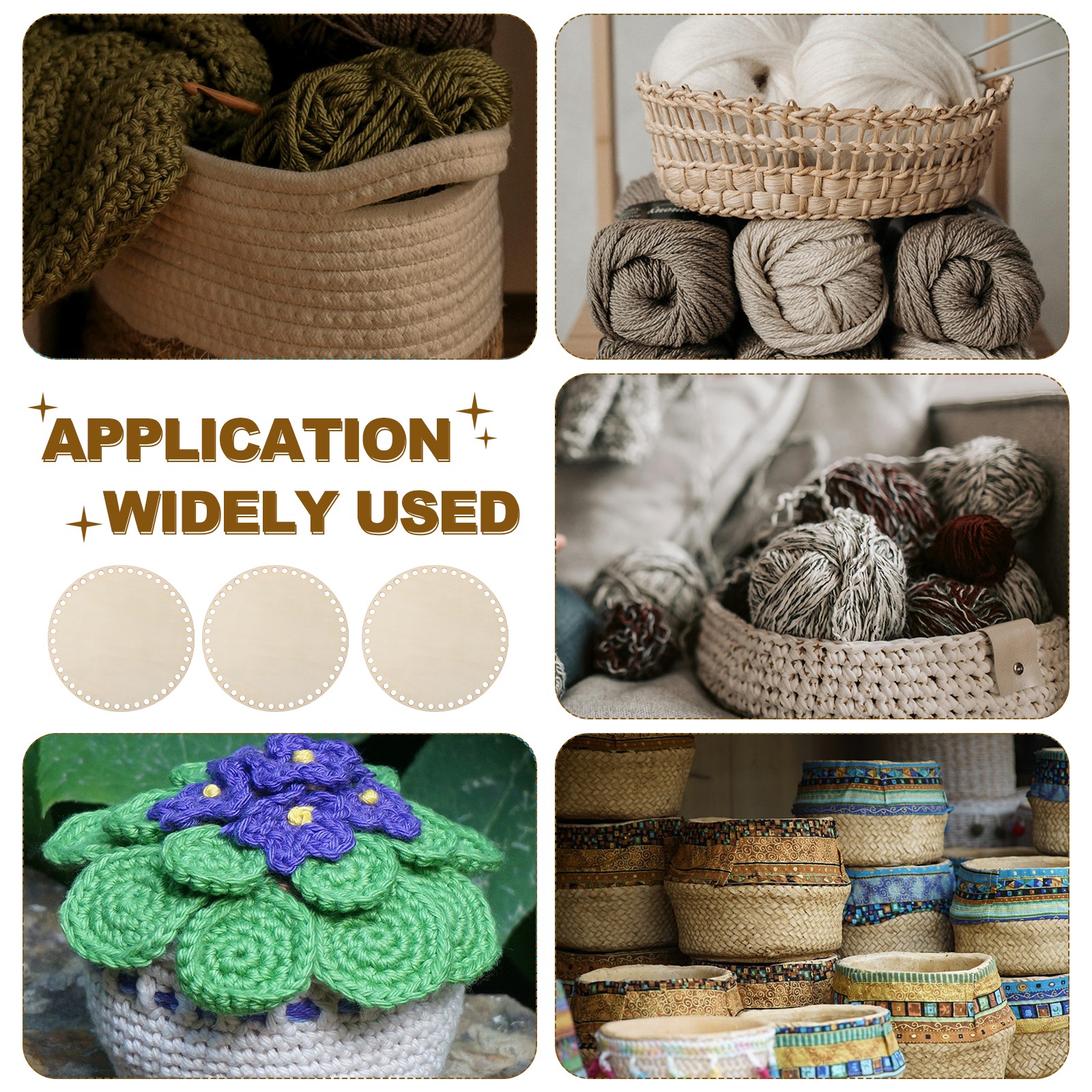 8 Dia 4 Pcs Round Crochet Basket Bottom,Woody