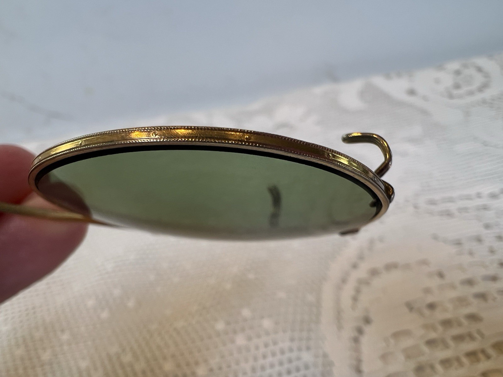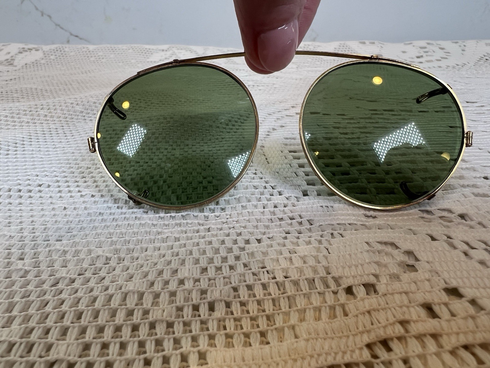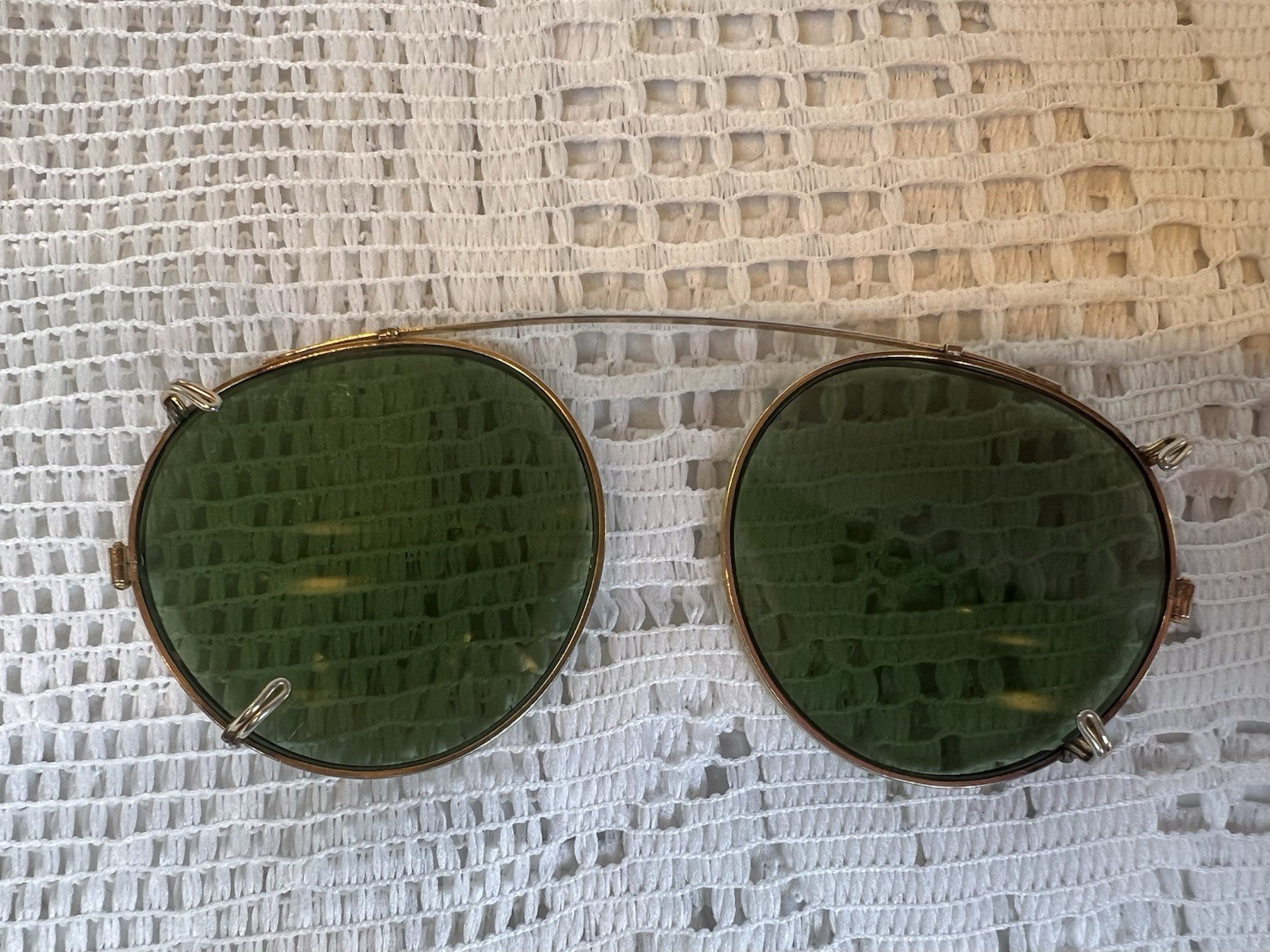 как выглядит Antique Round Green Glass Clip-On Sunglasses Gold Tone Beaded Rim Vintage фото