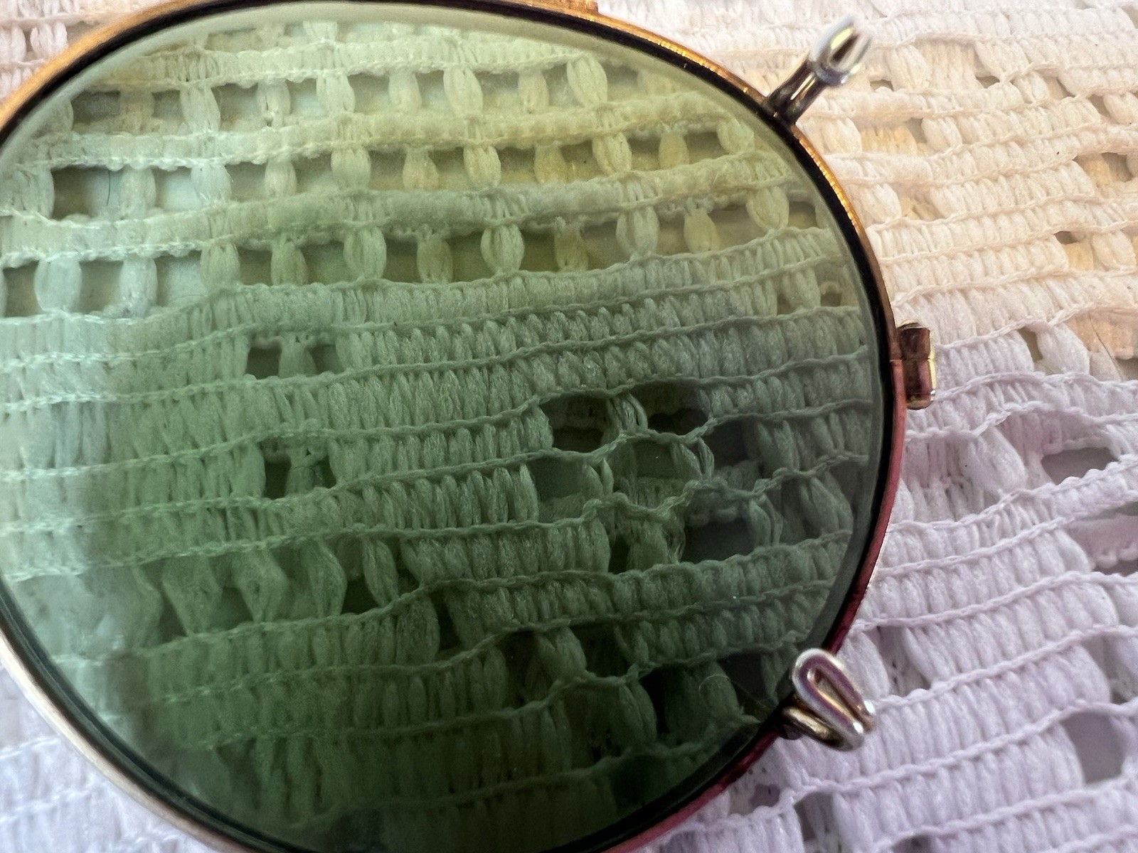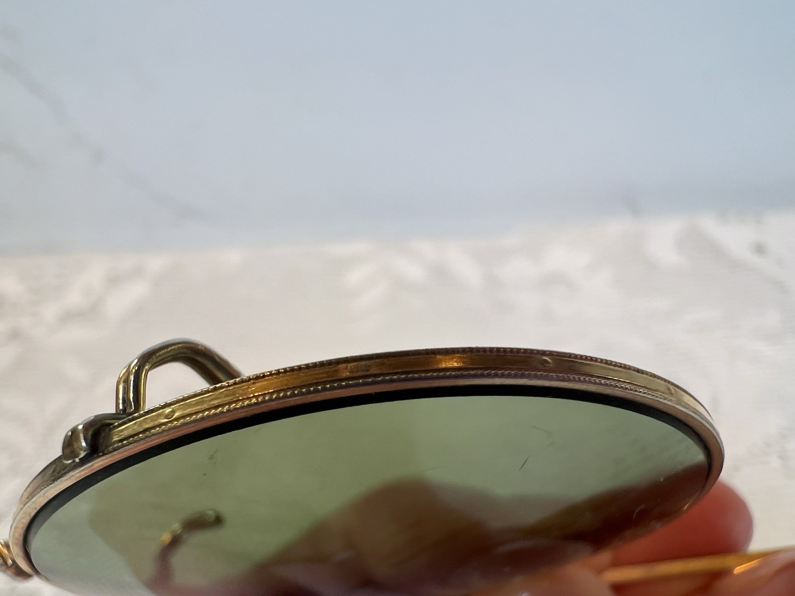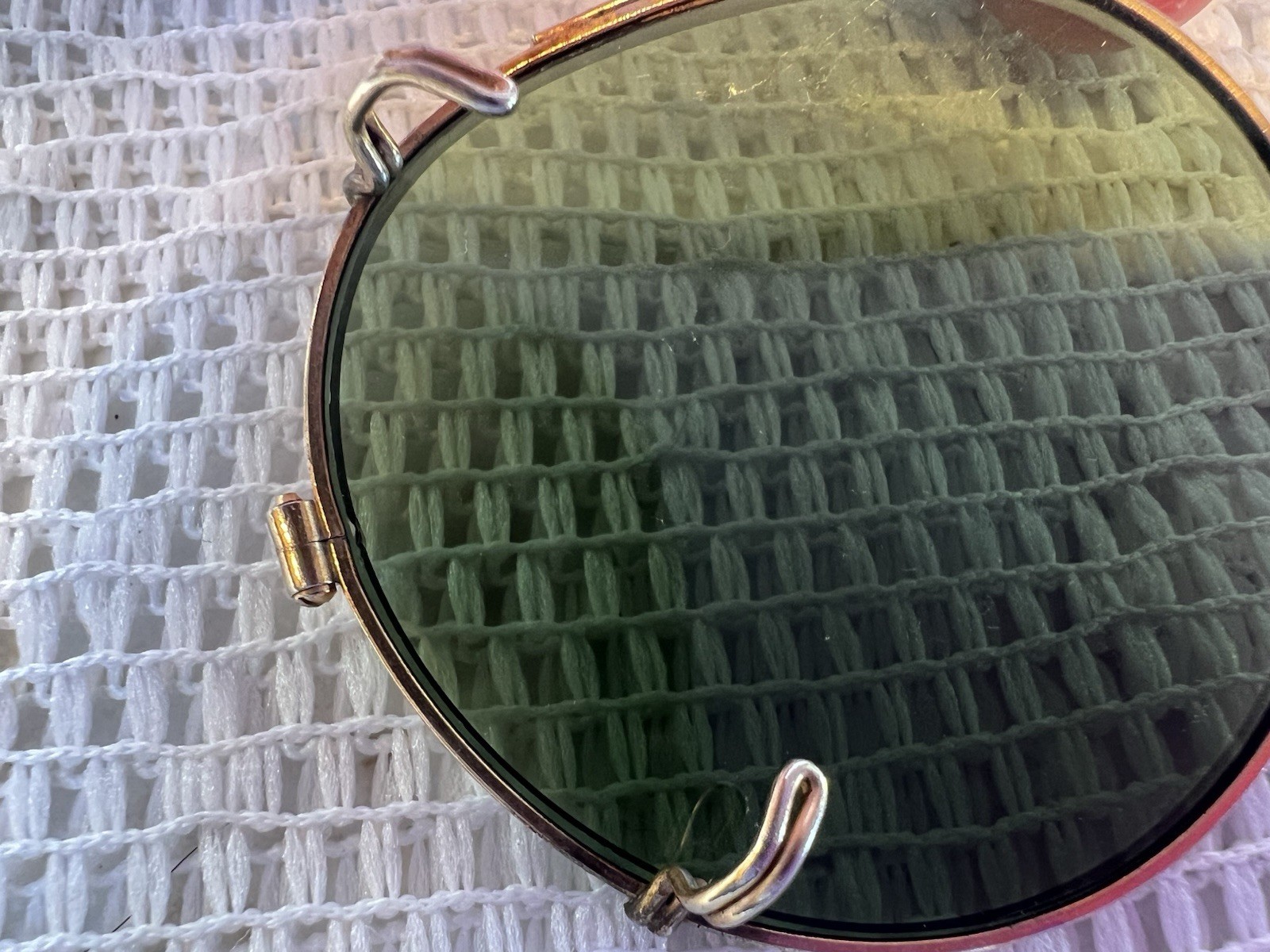 как выглядит Antique Round Green Glass Clip-On Sunglasses Gold Tone Beaded Rim Vintage фото