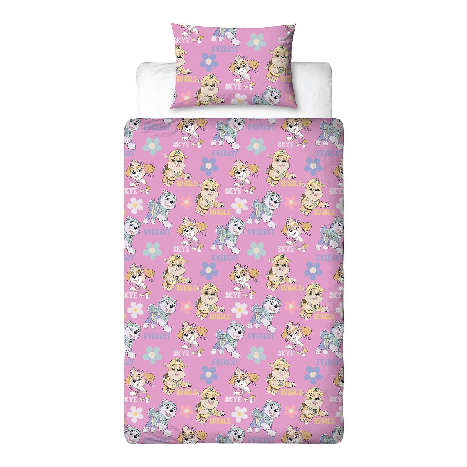 Paw Patrol Single Duvet Cover Set Brushed White Pink Blue 2 in 1 Design UK Size