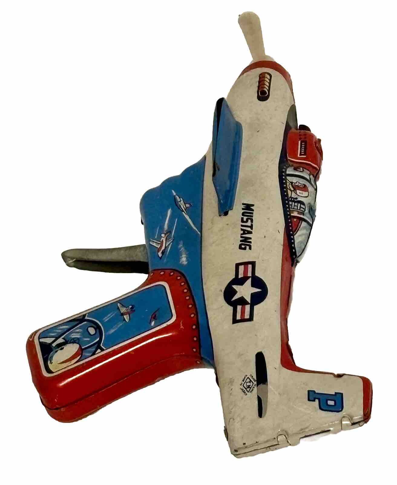 Vintage 60 s Tin Litho Friction US-P 51 Powered Trigger Plane T