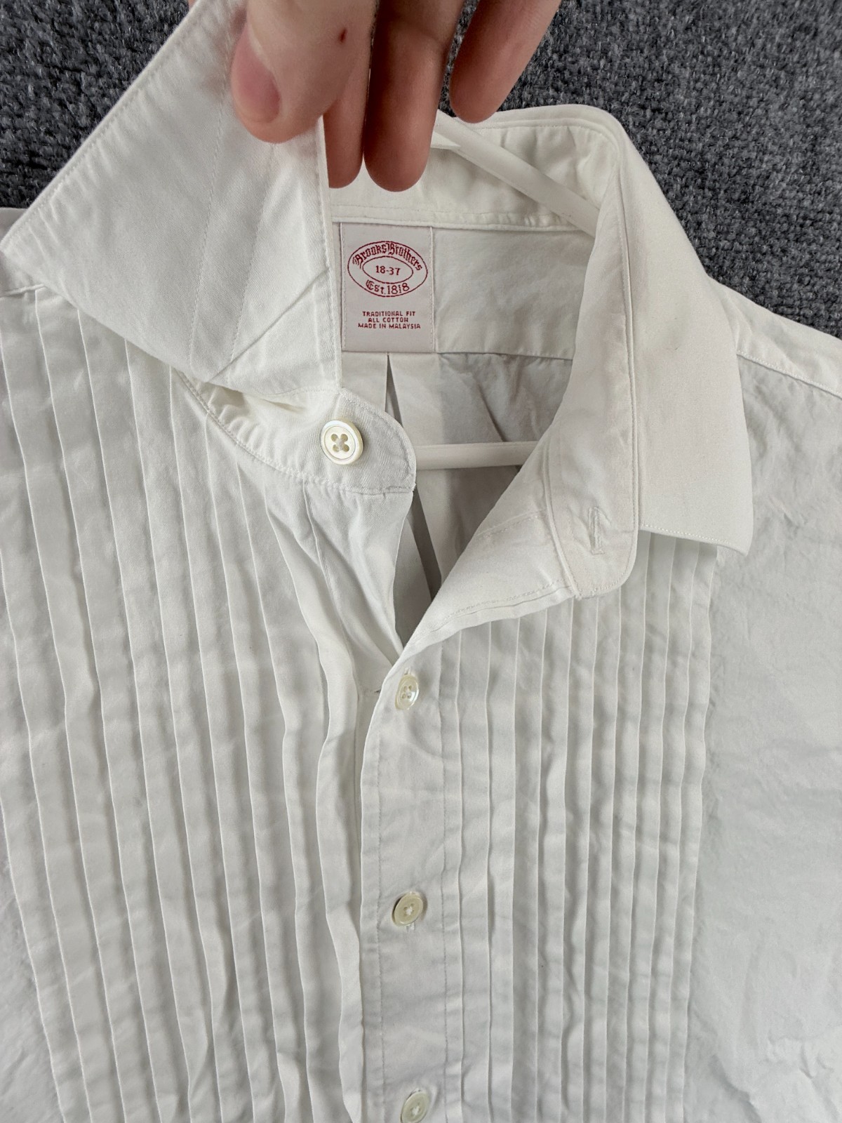 как выглядит Brooks Brothers Formal Traditional 18 37 French Cuff Cotton White Button Up Men фото