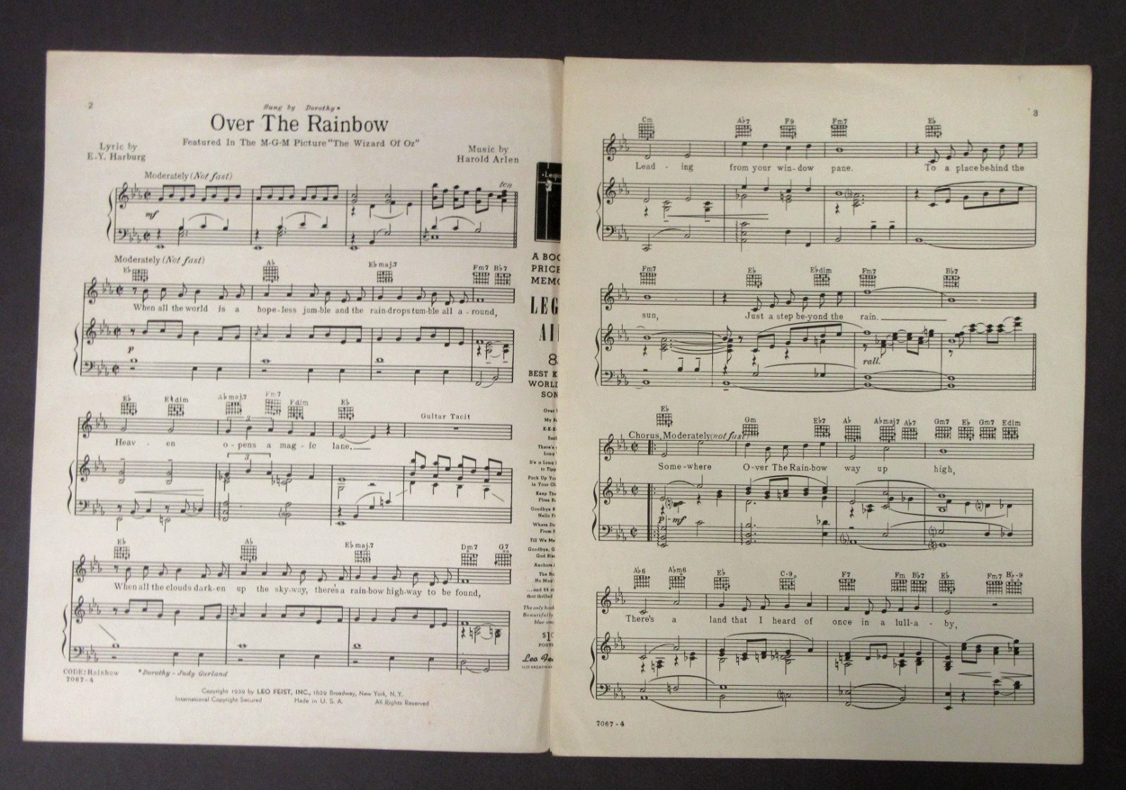 как выглядит 1939 WIZARD OF OZ "Over The Rainbow" Judy Garland movie sheet music l1 фото