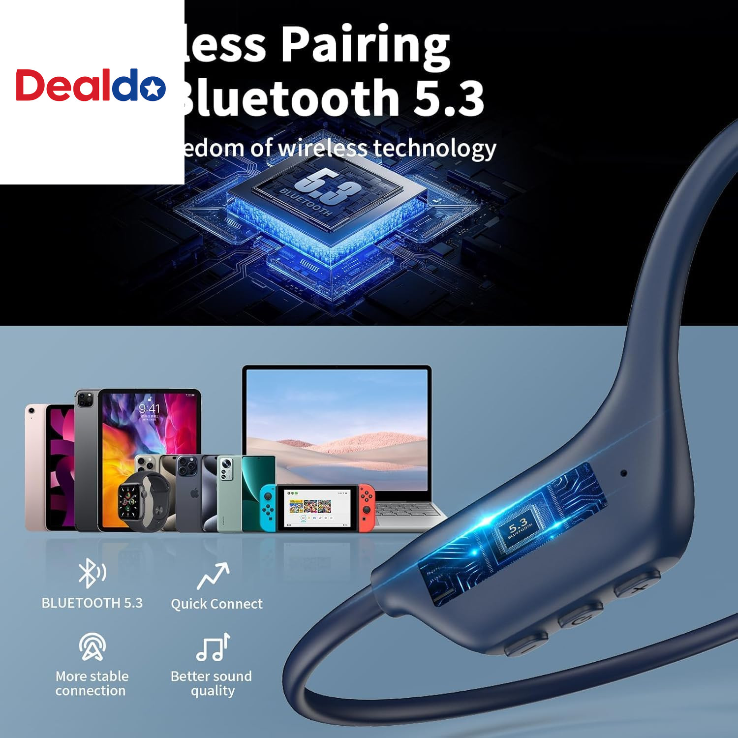 Bone Conduction Headphones, Wireless Bluetooth 5.3 Open-Ear Headphones with Mic,