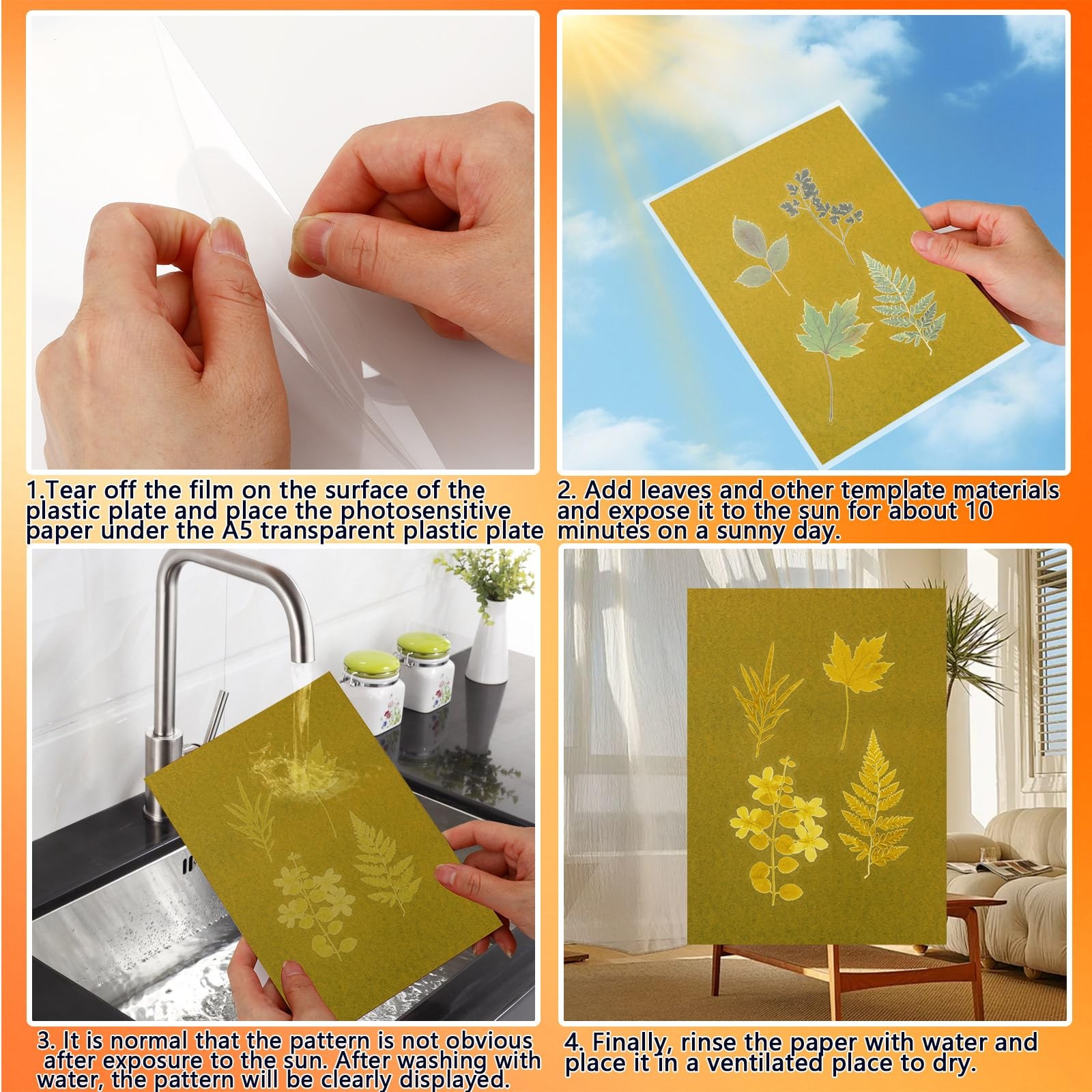 40 Sheets Sun Print Paper Kit, 5.8 x 8.3 Inch Cyanotype Art Drawing Fall Red ...
