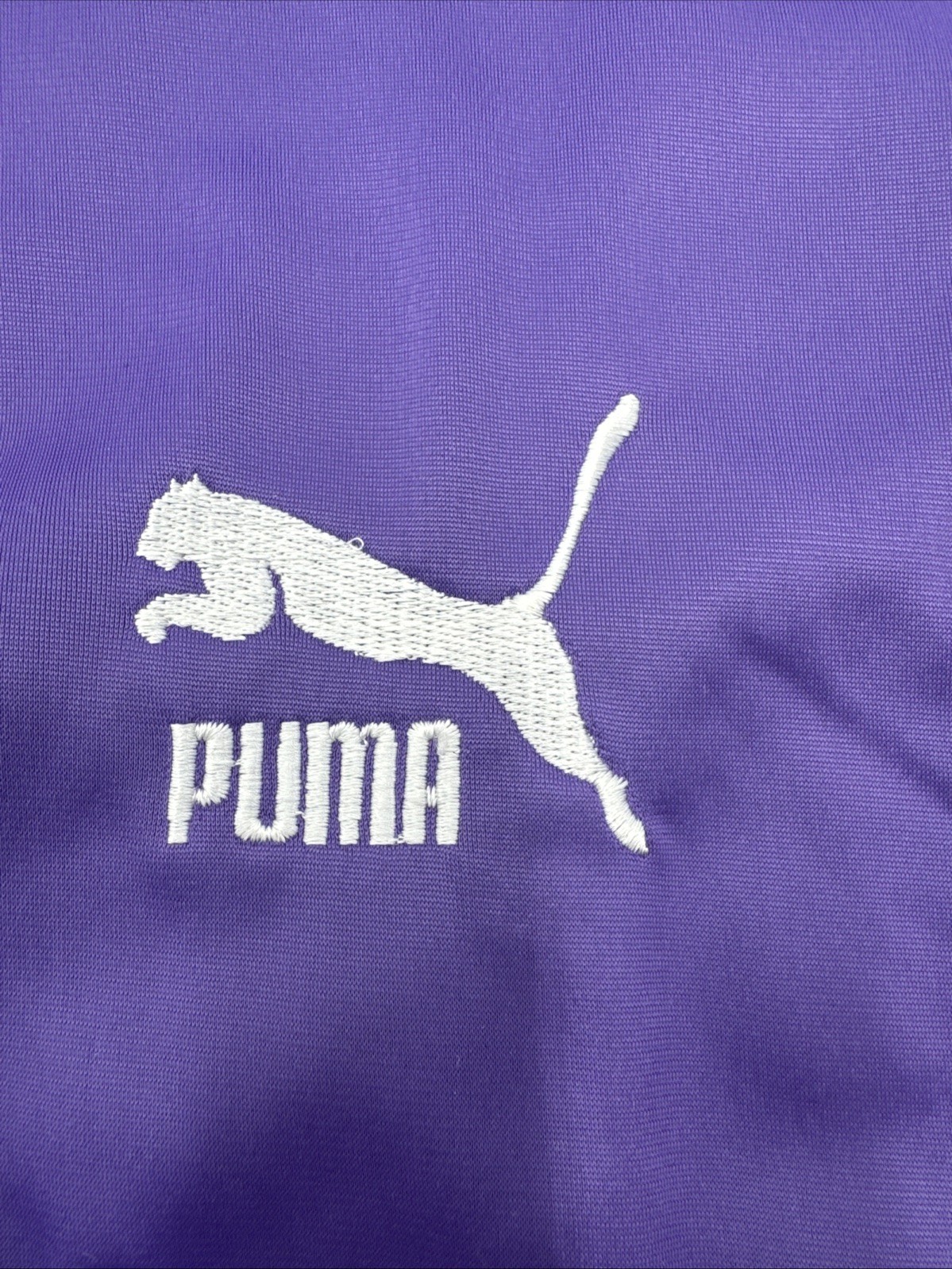 как выглядит Vintage Puma T7 track jacket in purple with gray stripes 1980s Read Description фото