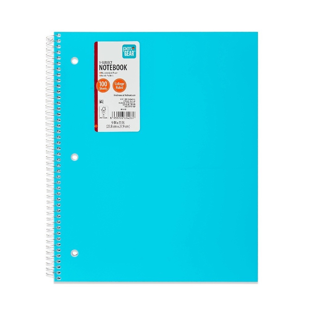 4-Pack College Ruled 1-Subject Notebook with Inside Pockets, 9 x 11 Inches, Teal