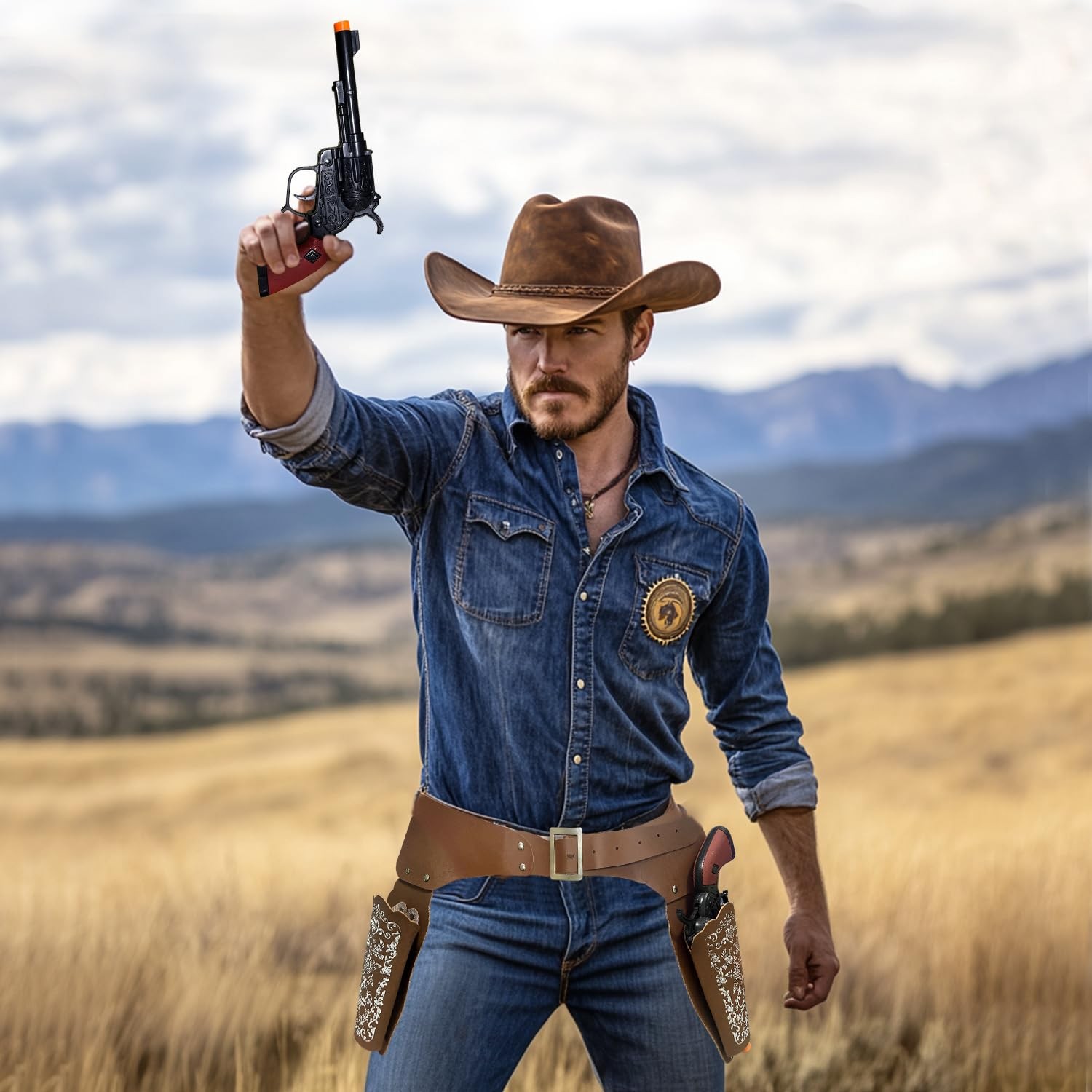 как выглядит GAGIFT WORLD Cowboy Toys Gun and Western 9 4.3 1.3 inches, Black Brown фото