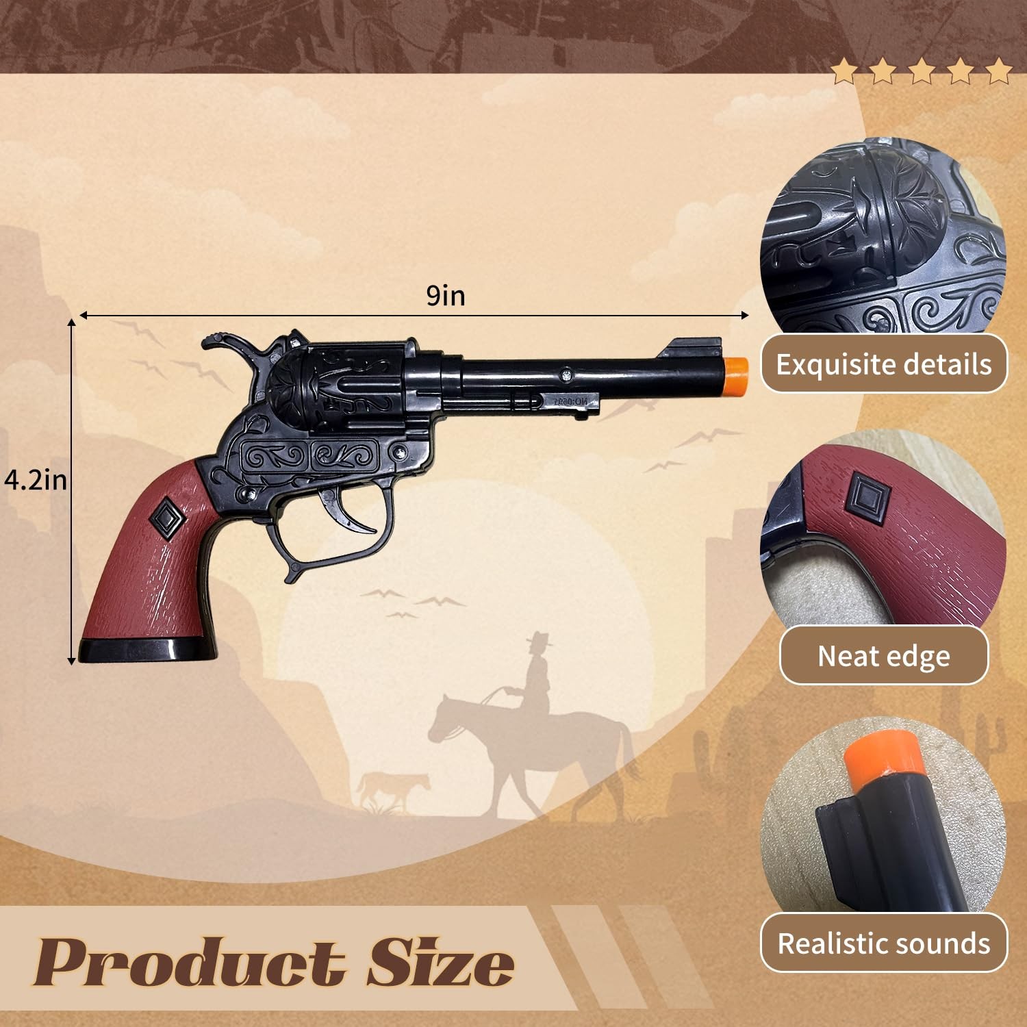 GAGIFT WORLD Cowboy Toys Gun and Western 9 4.3 1.3 inches, Black Brown
