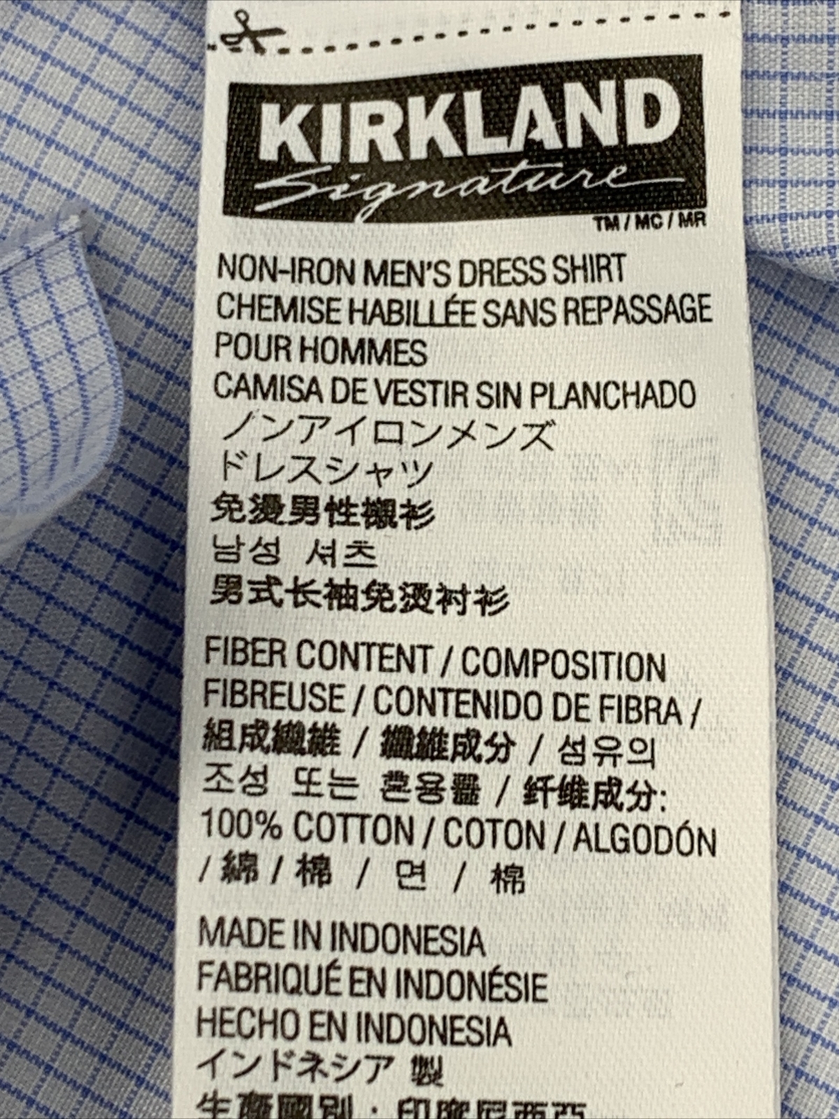 Kirkland Signature Button Down Shirt Mens Blue Check Long Sleeve Traditional Fit