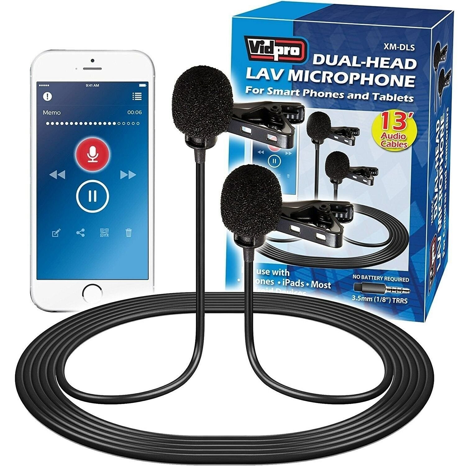 Vidpro XM-DLS Dual-Head Interview Lavalier Microphone for Smartphones Tablets