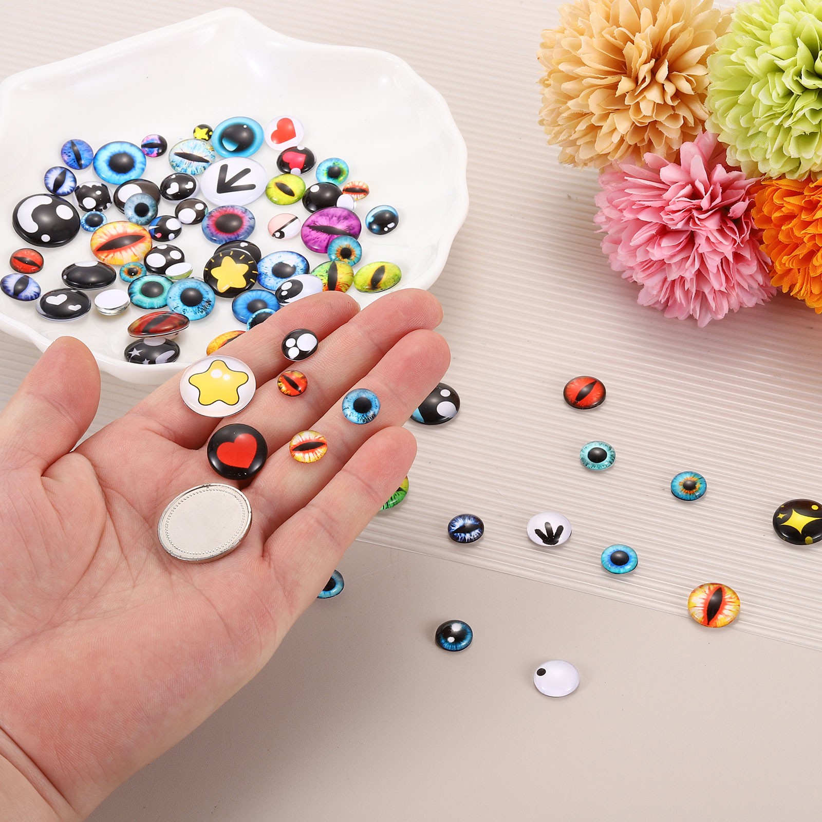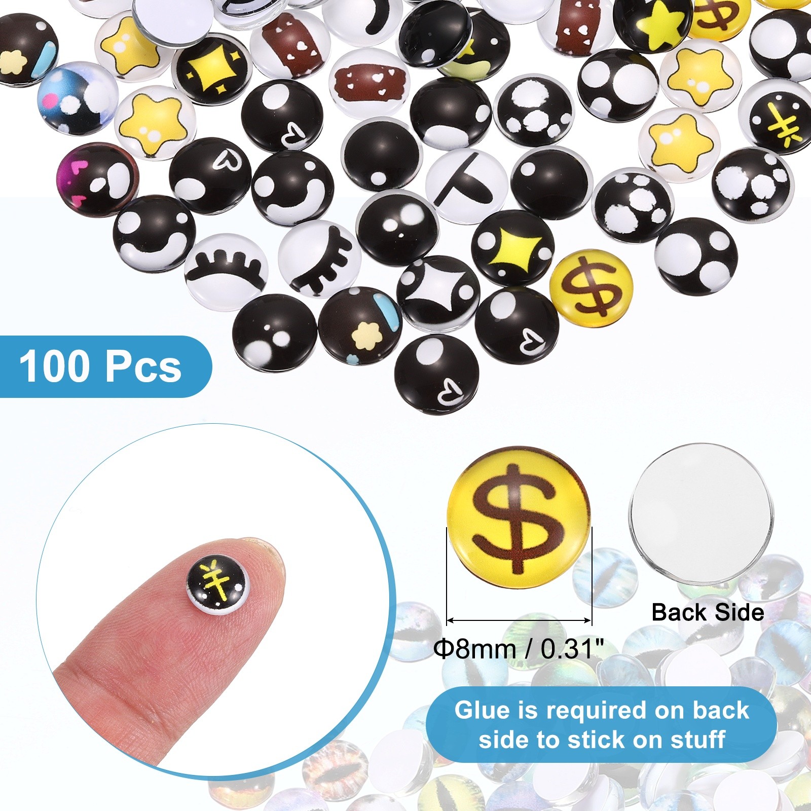 100Pcs 8 mm Glass Cabochon Eyes, Blue/Black/White/Yellow/Red 212
