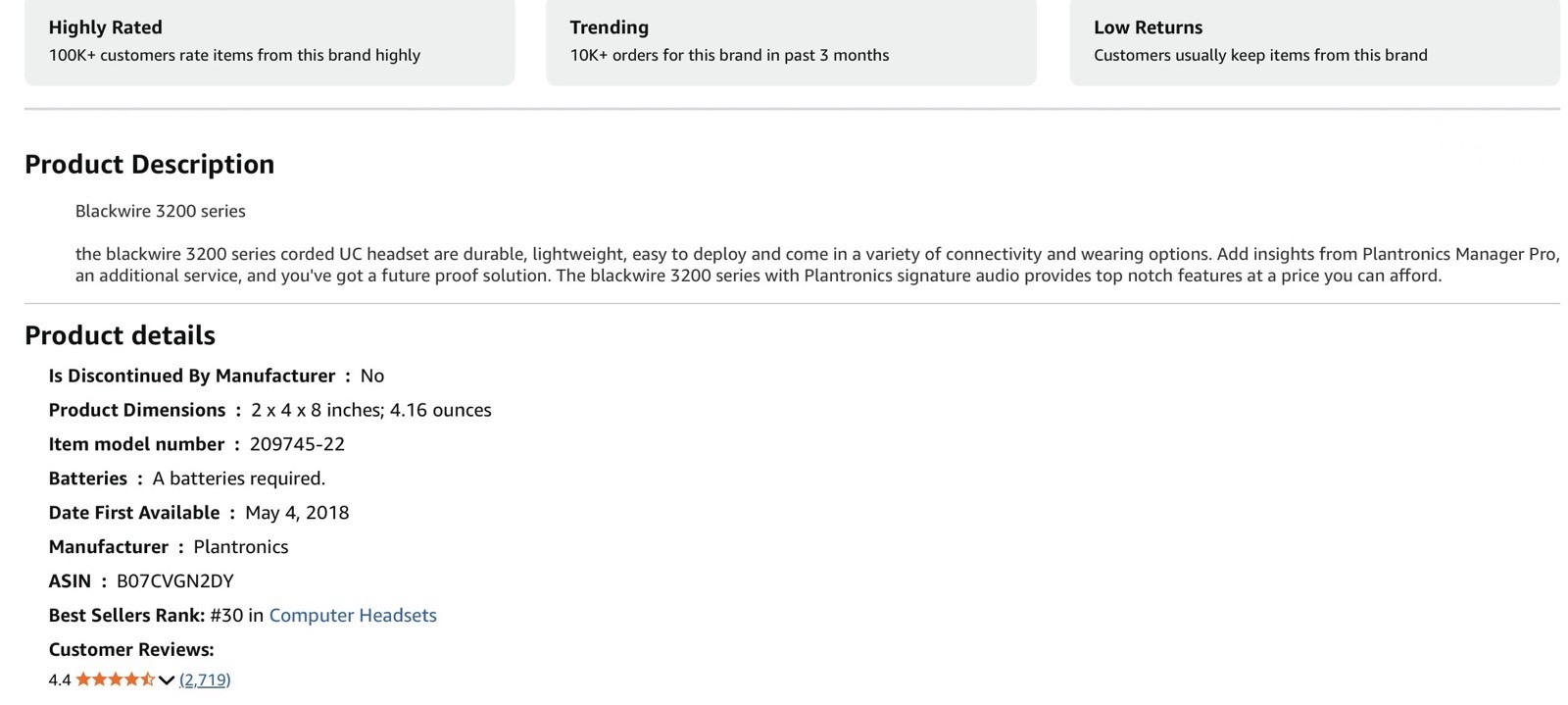 Модель: Plantronics Blackwire 3220