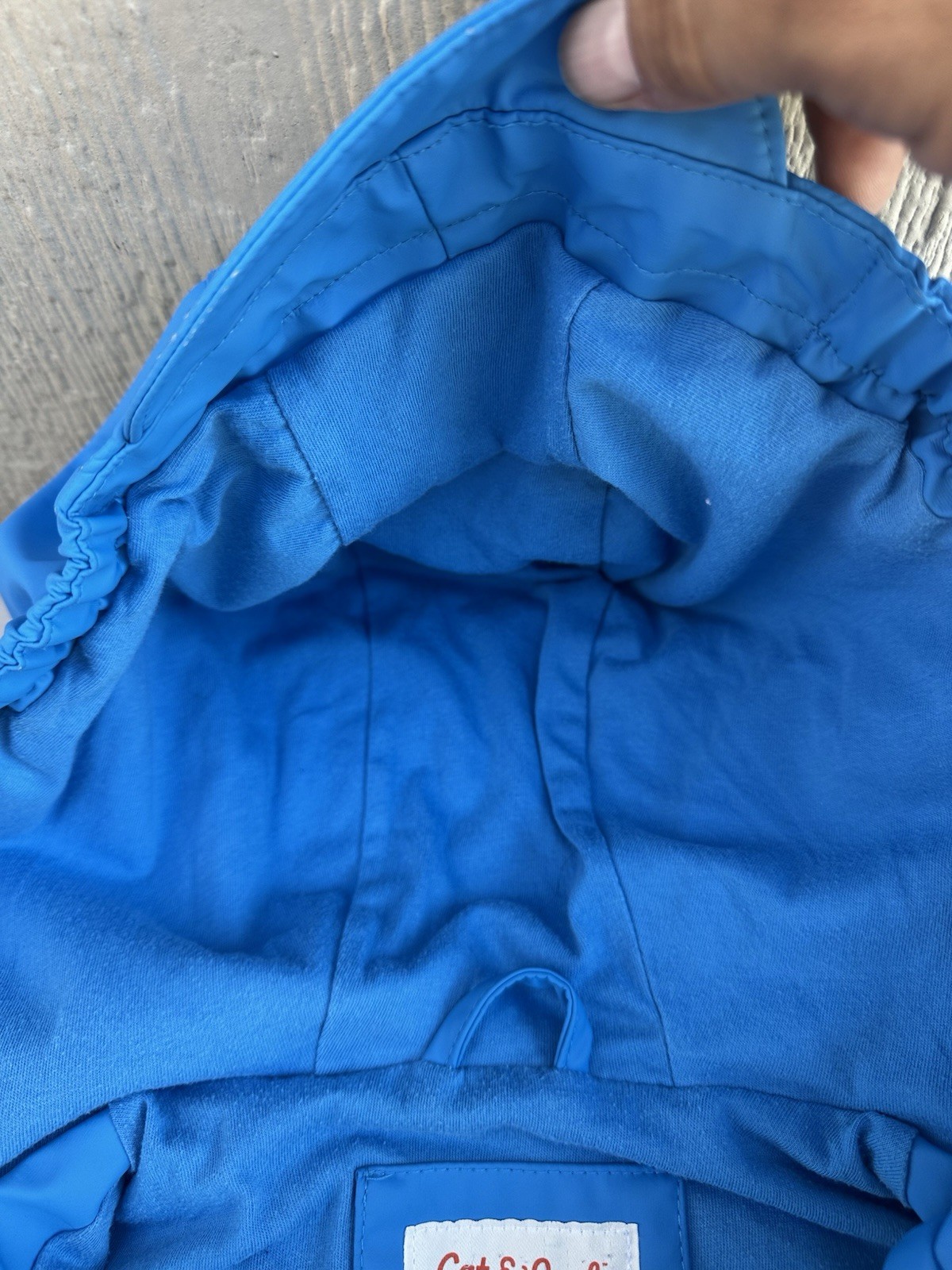 как выглядит Cat Jack Rain Coat Jacket Size S 6/7 Blue Long Sleeve Water Resistant Big Kid фото