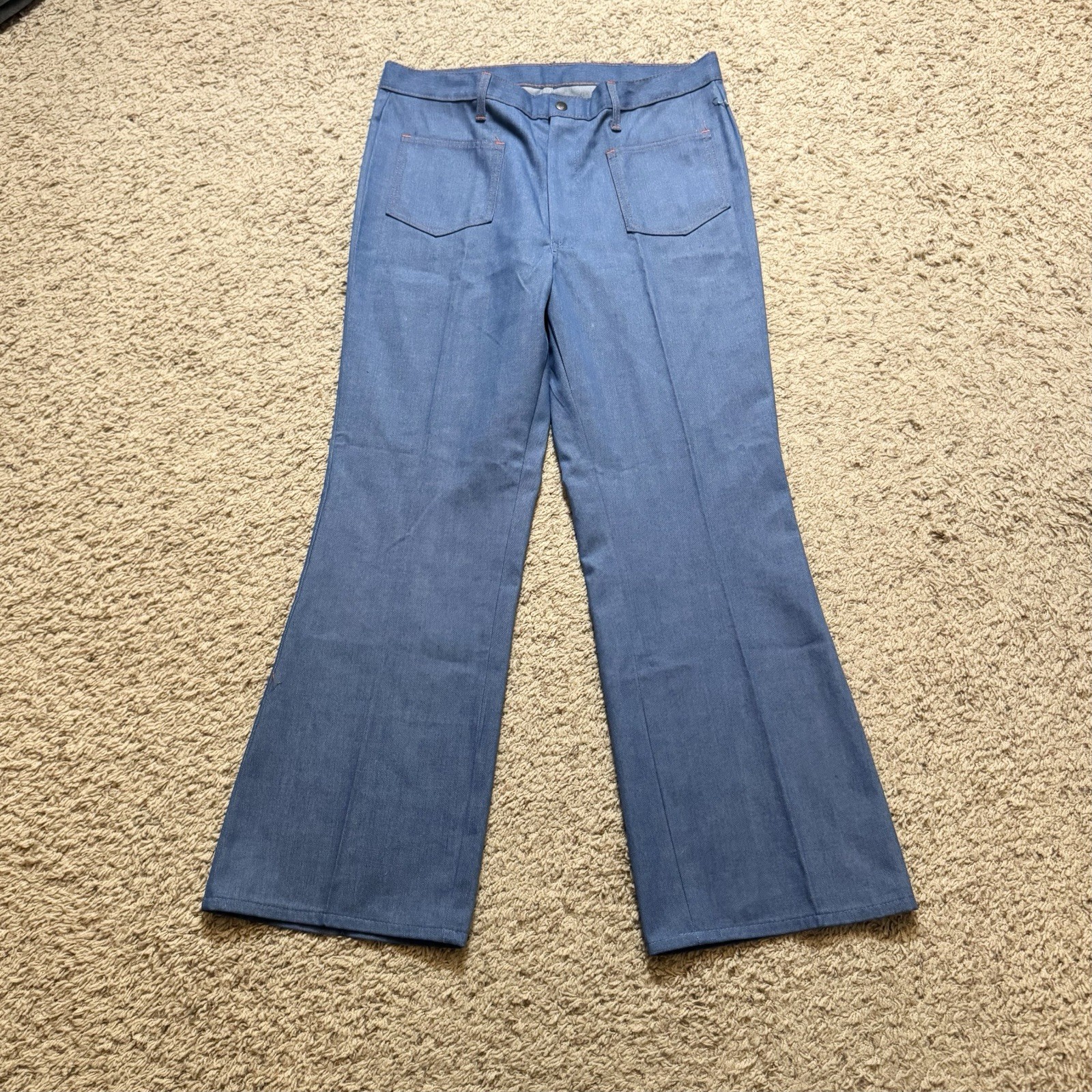 как выглядит Vintage Sears Dead Stock Nwt Indigo With Orange Embroidery Bell Bottoms Pants 34 фото