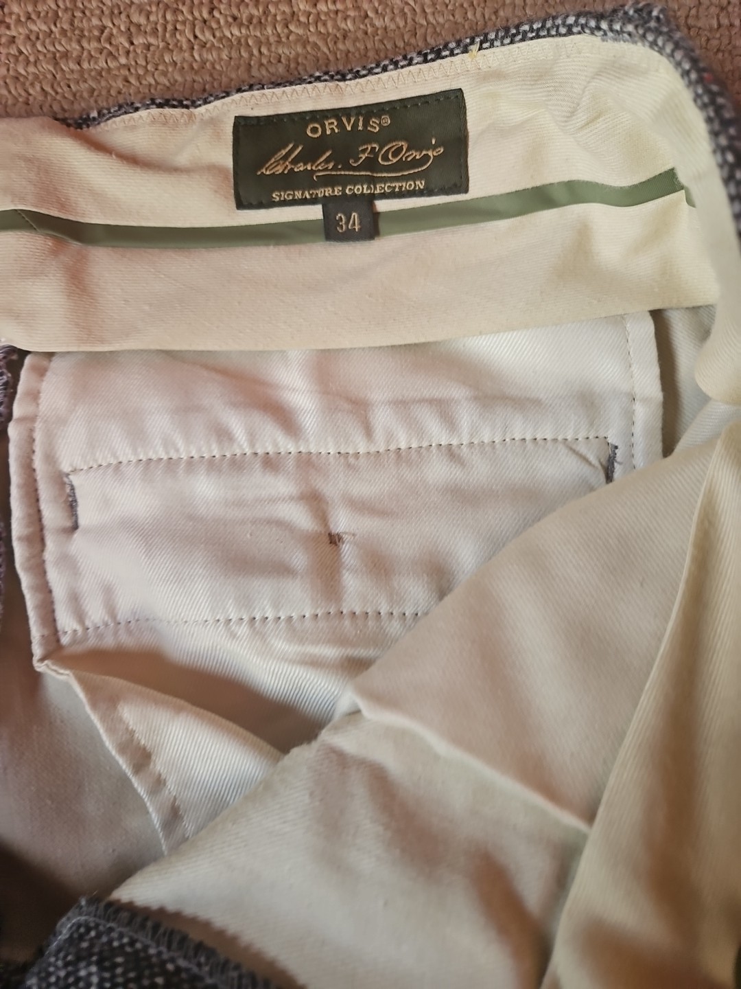 как выглядит Vintage ORVIS Donegal Wool Tweed Pants Leather Piping on Pockets Sz. 34-29 фото