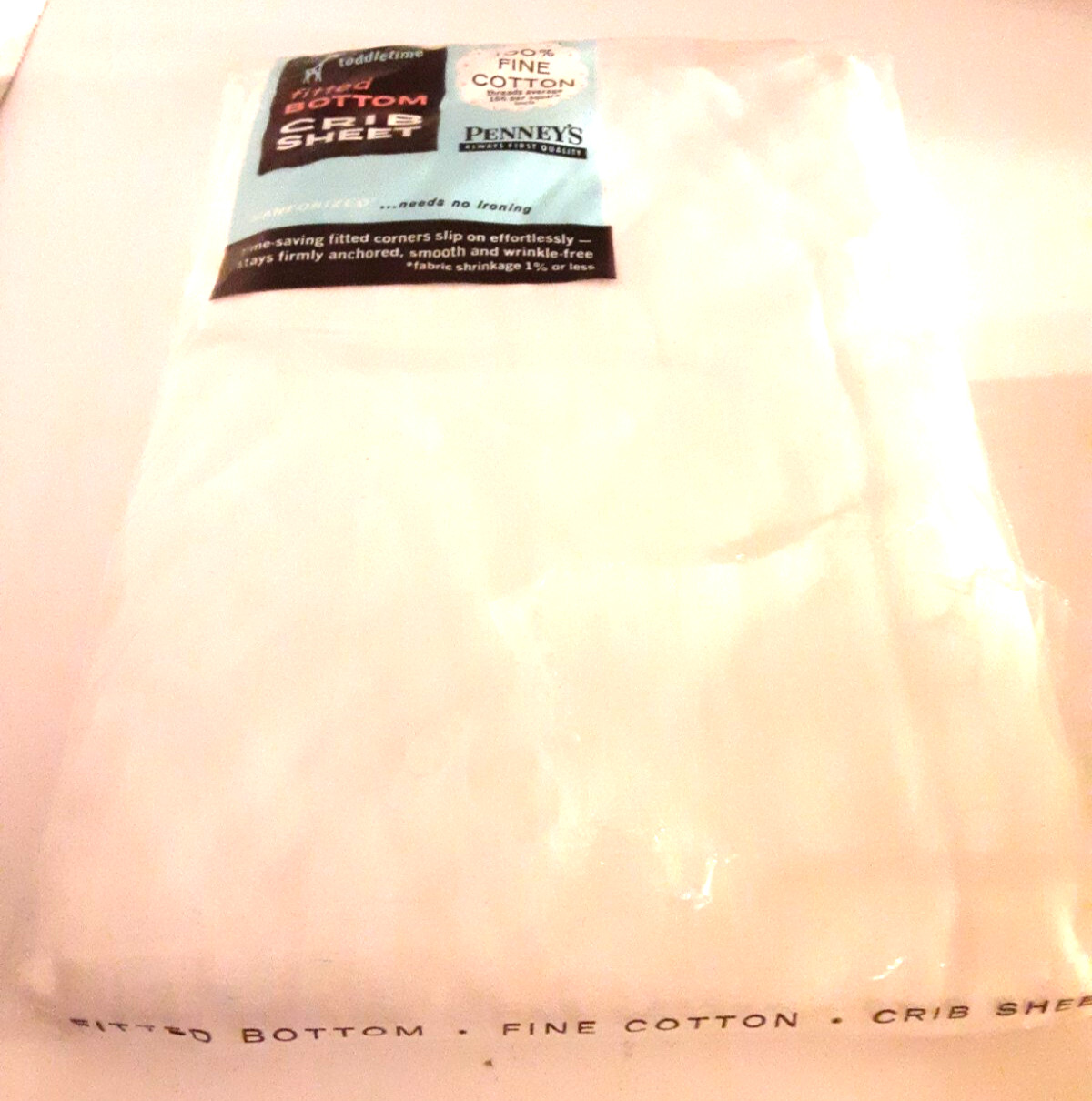 как выглядит VINTAGE JCPenney Toddletime Baby Fitted Standard Crib Sheet White Nursery 1970s фото