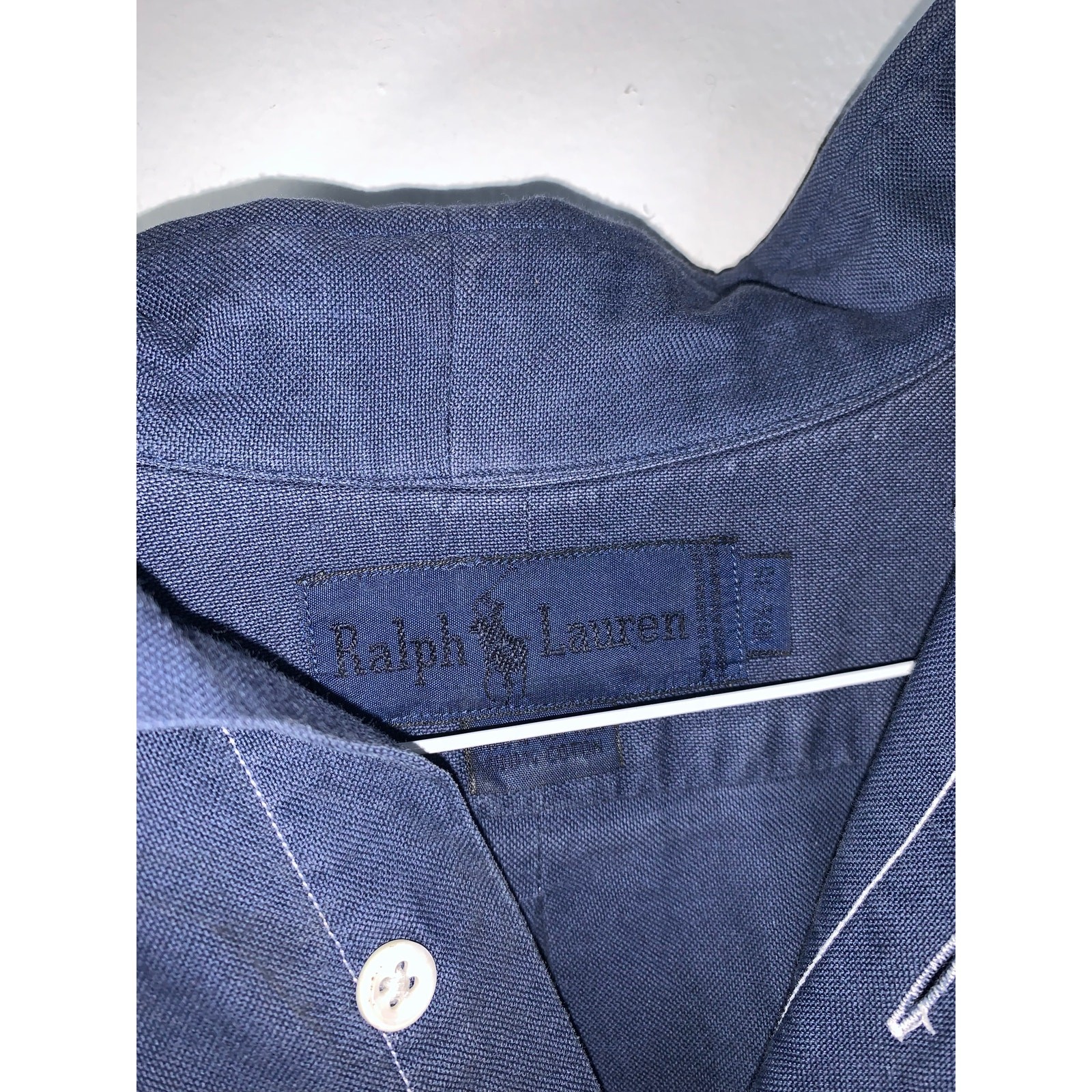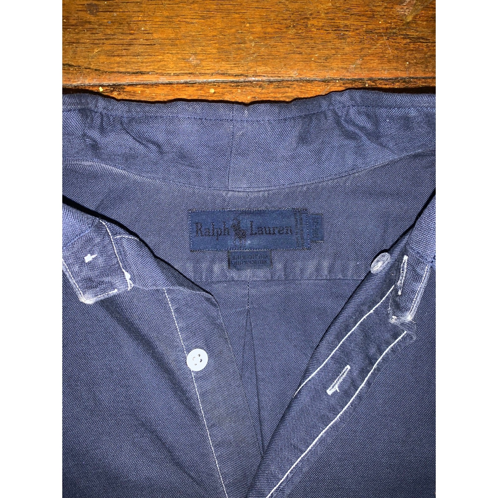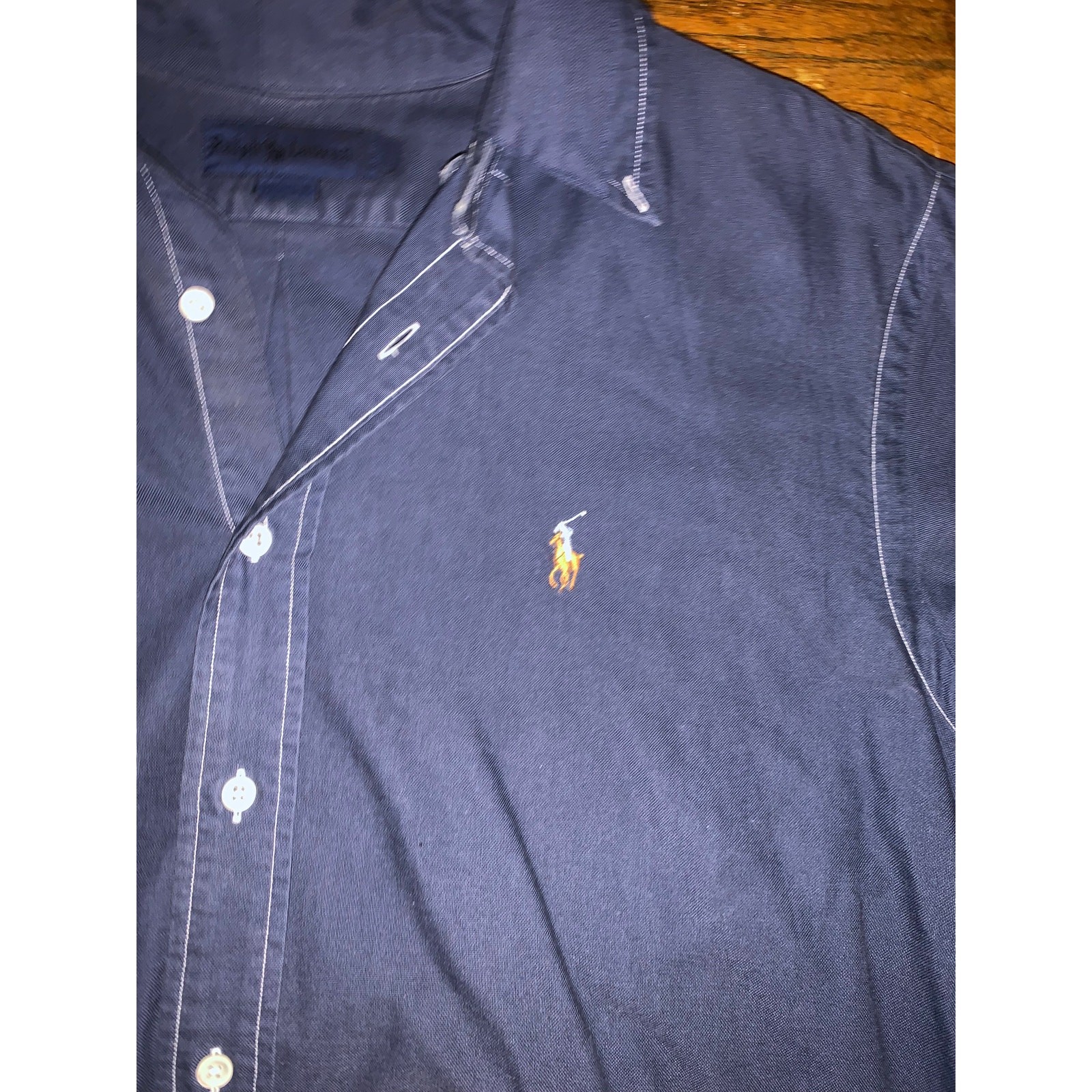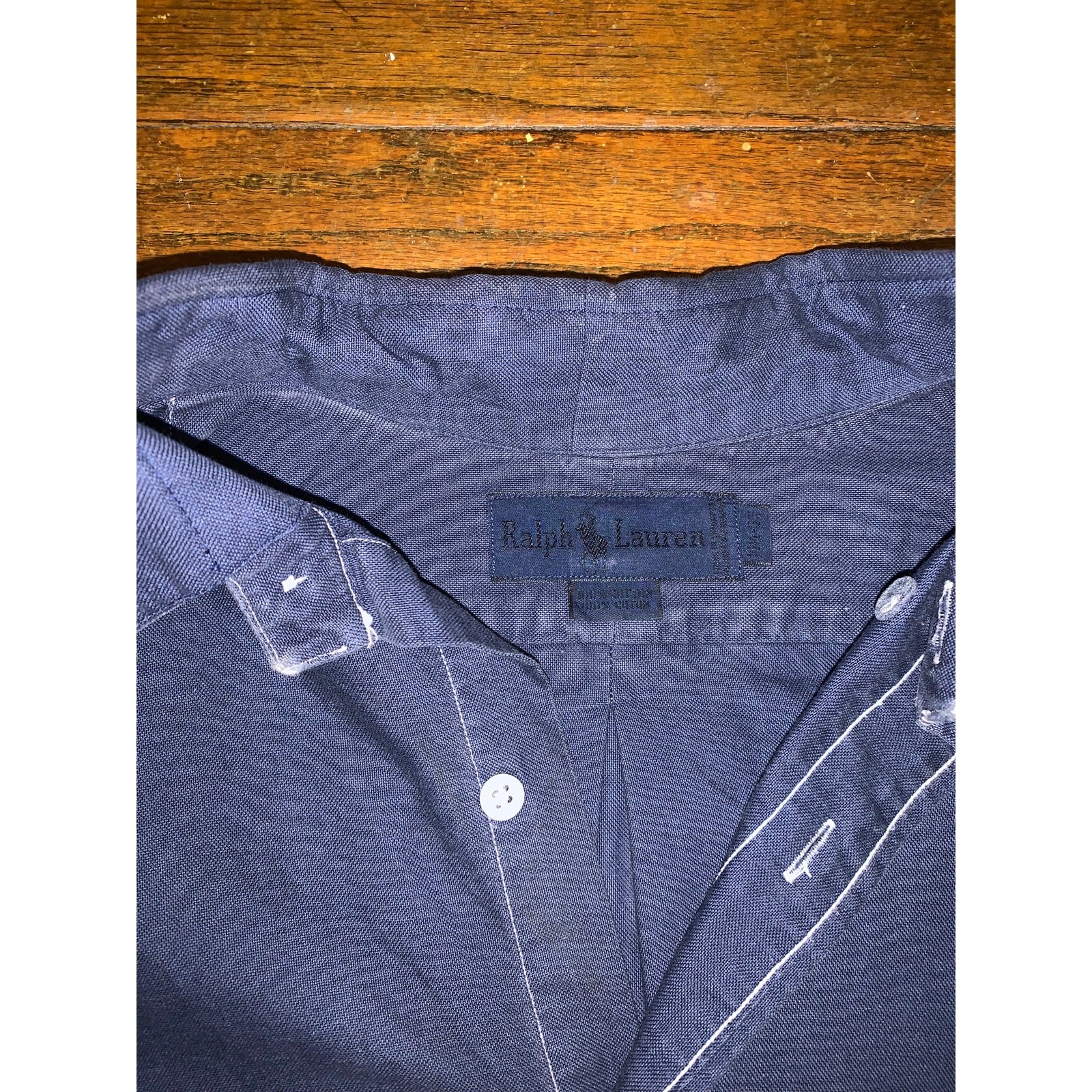 как выглядит Polo Ralph Lauren Short Sleeve Button Up Shirt Navy Blue White Stitch Men s XL фото