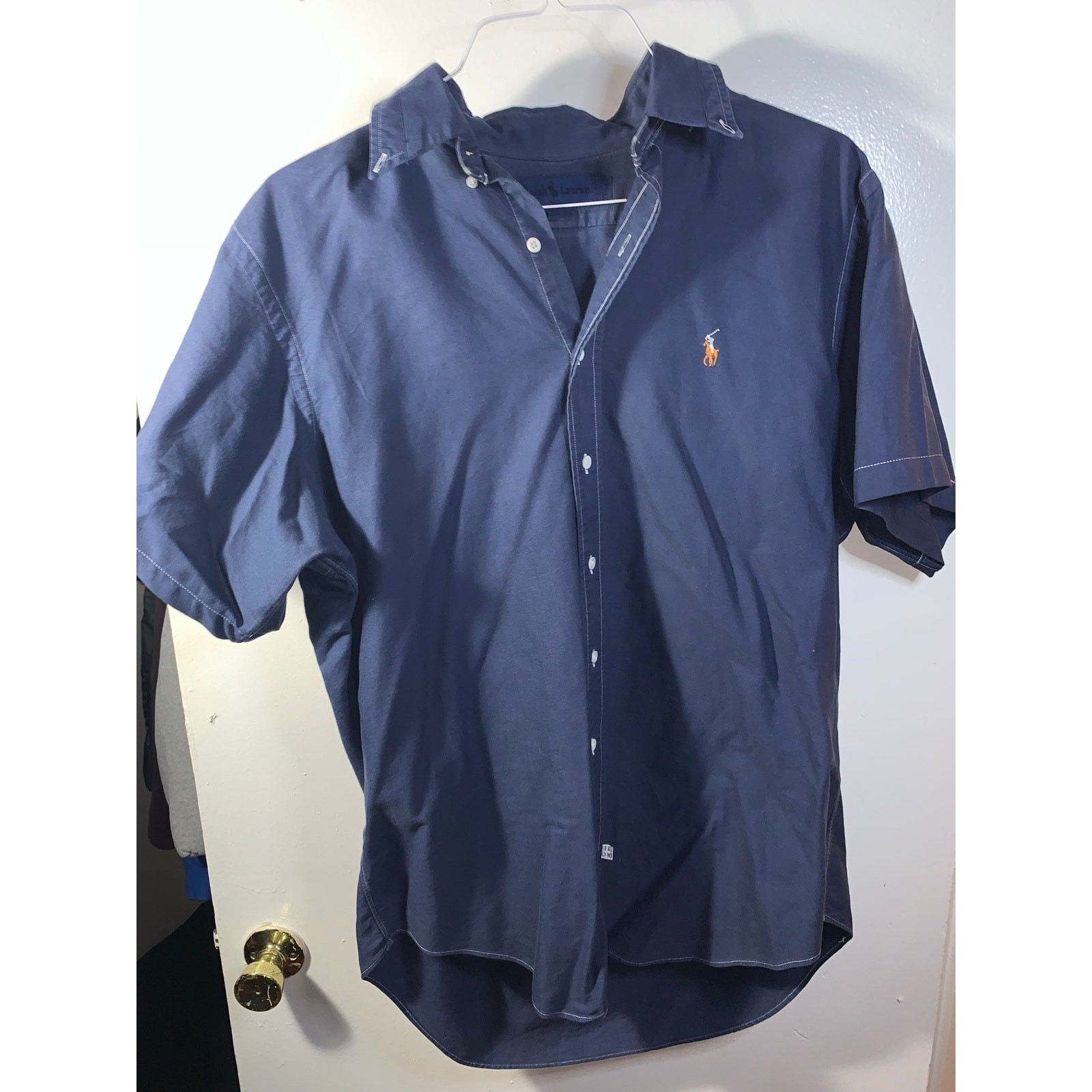 Polo Ralph Lauren Short Sleeve Button Up Shirt Navy Blue White Stitch Men s XL