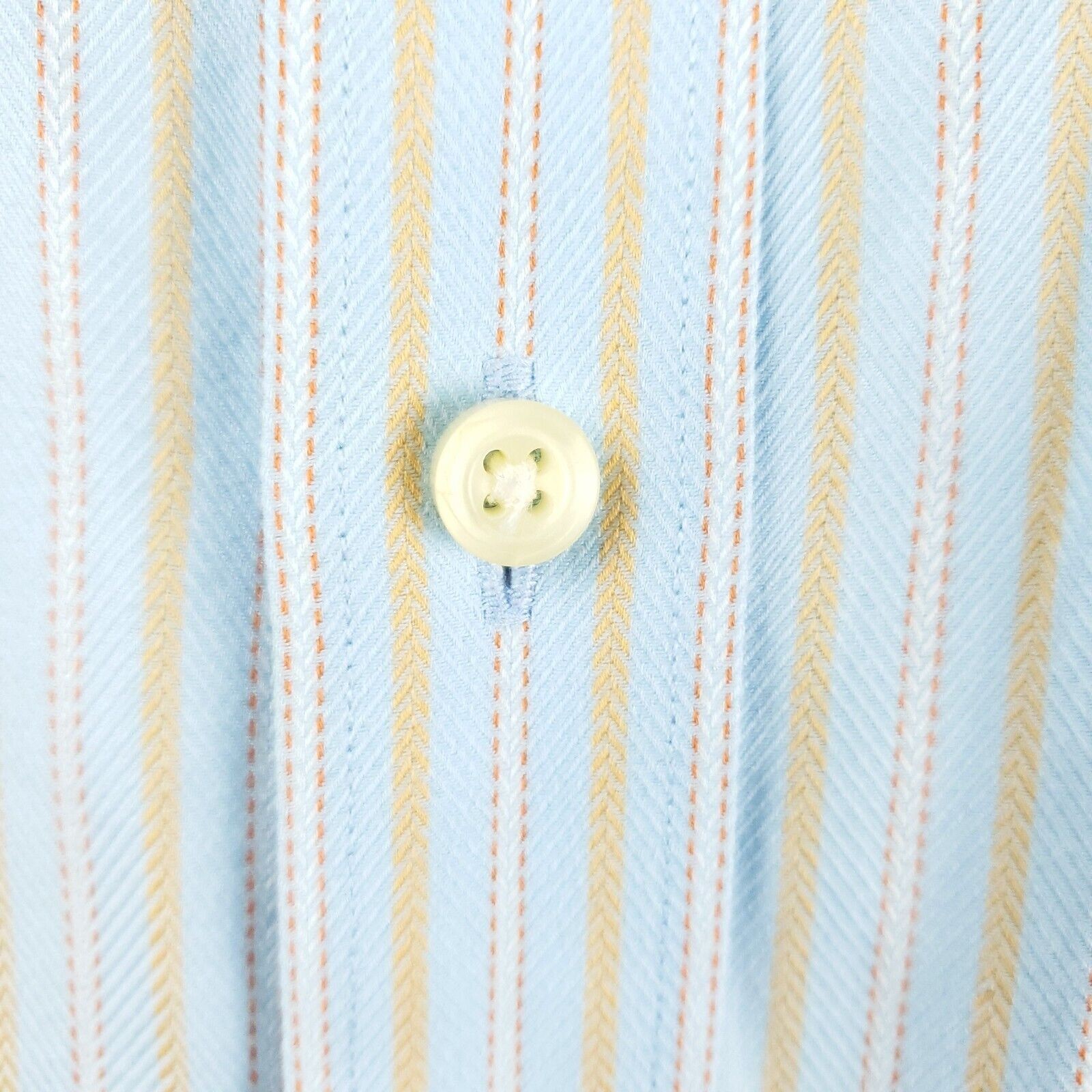 как выглядит Tailorbyrd Shirt Men Large Blue White Striped Flip Cuff 2-Ply Cotton Button-Down фото