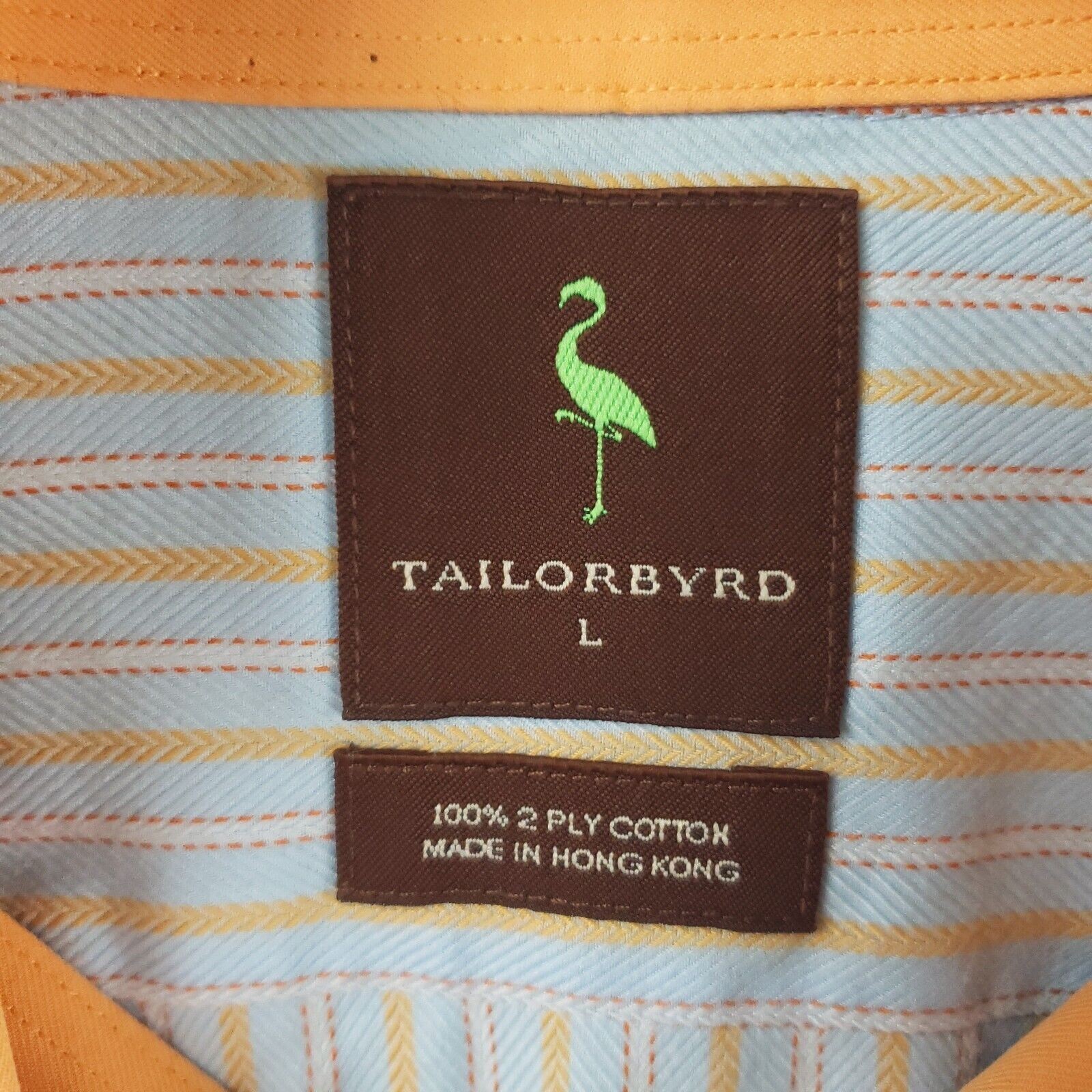 Tailorbyrd Shirt Men Large Blue White Striped Flip Cuff 2-Ply Cotton Button-Down