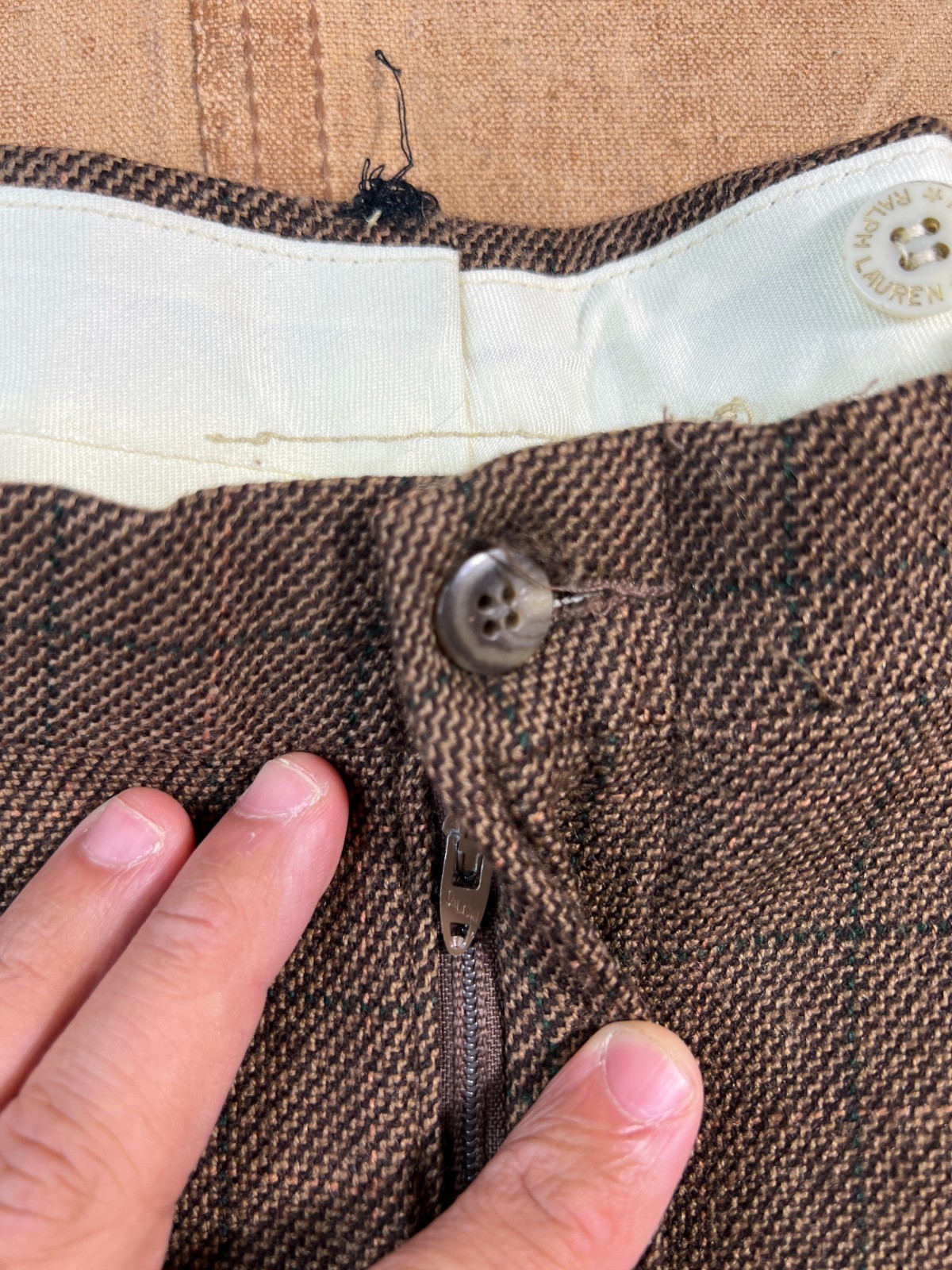 Vintage Polo Ralph Lauren Plaid Pleated Loose Fit Talon Brown Pants 34 x 31.5