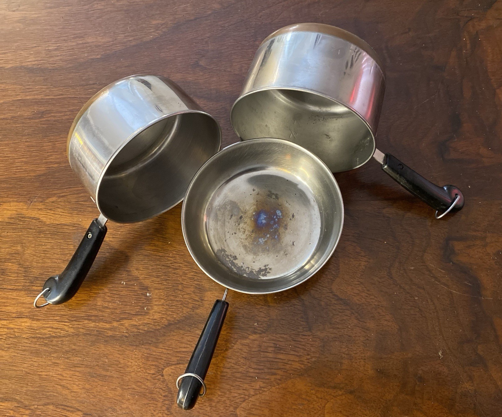 Vintage Child Size Stainless Steel Toy Cookware Set 3 Sauce/Frying Pan