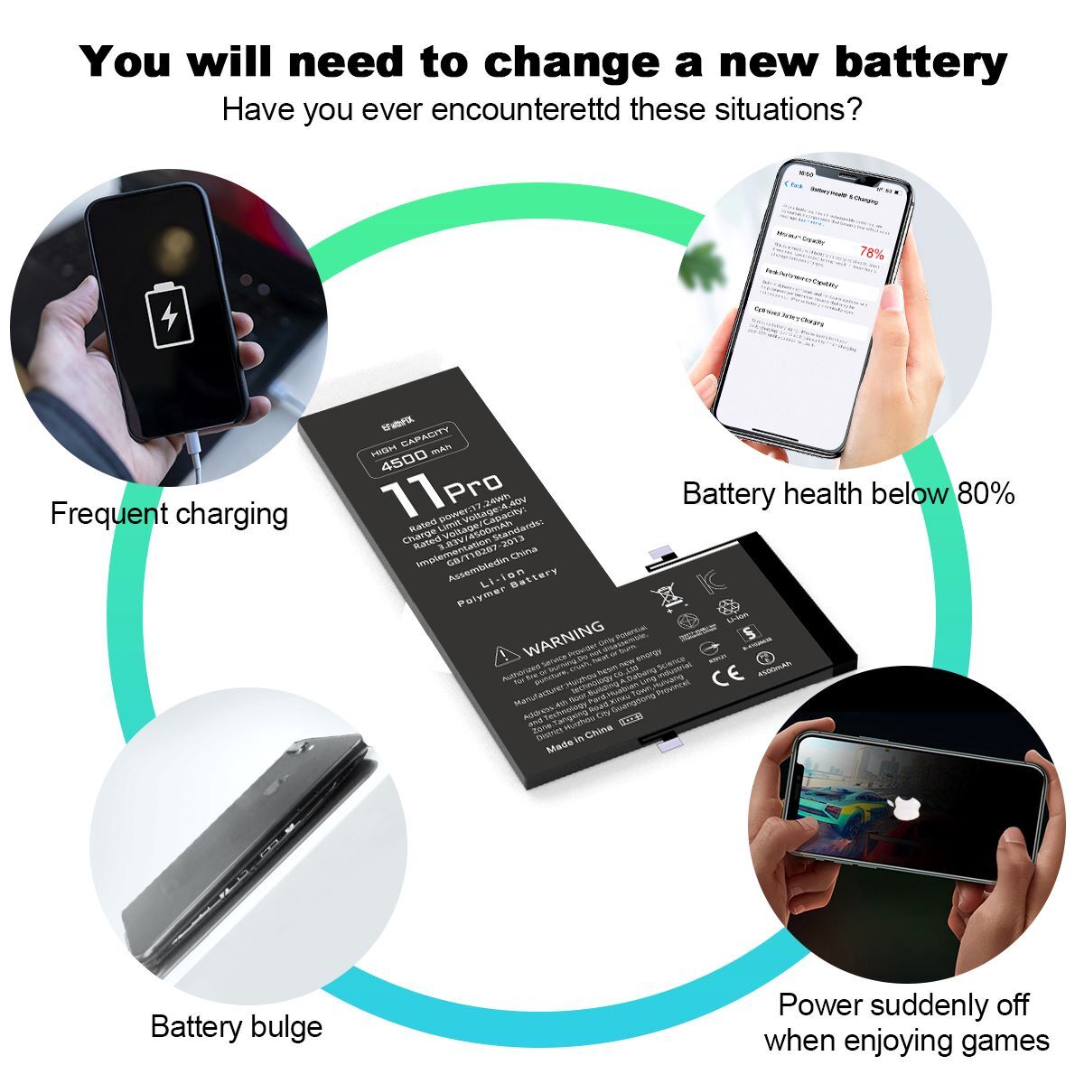 4500mAh Internal Battery Replacement For iPhone 11 Pro High Capacity Quality Lot