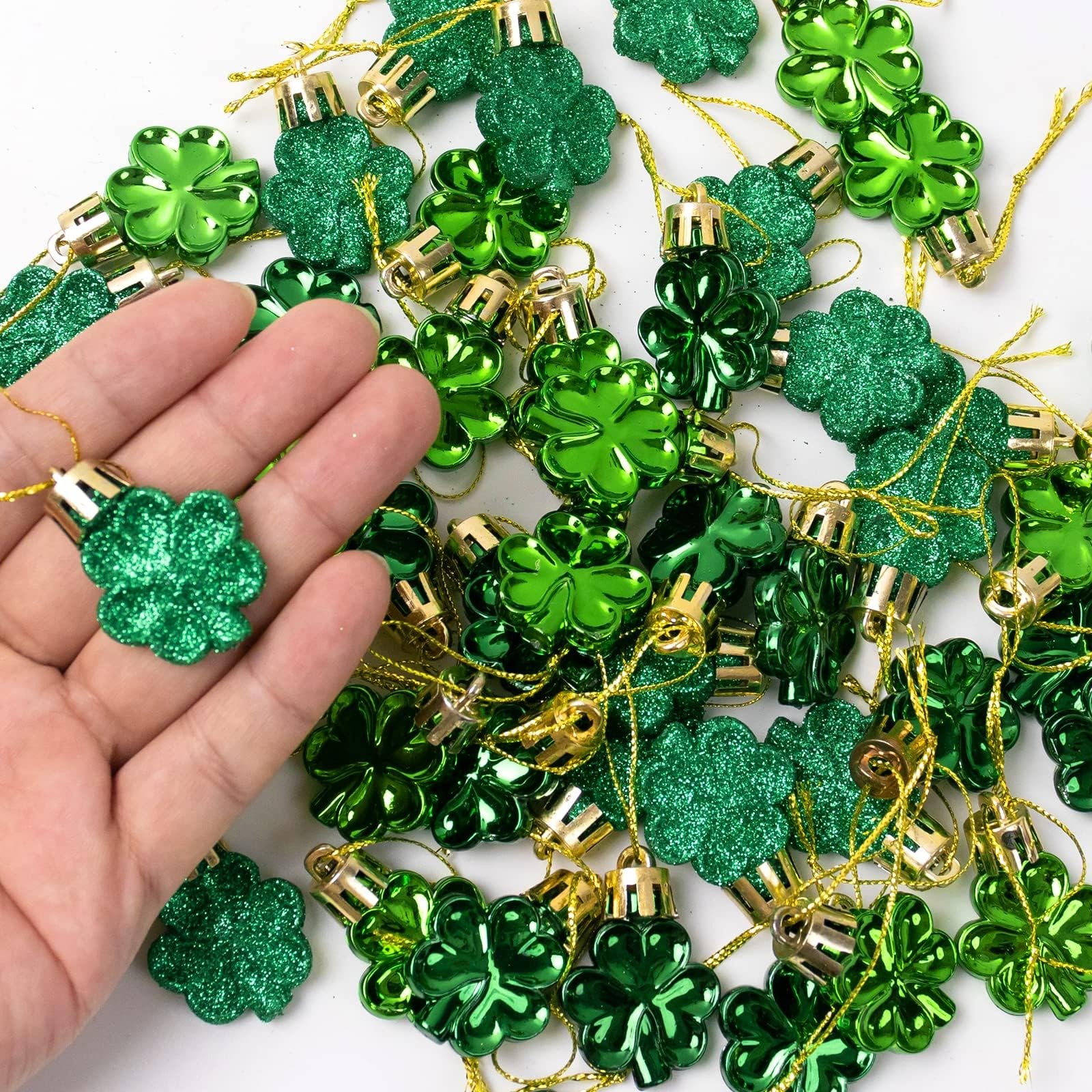 St Patrick's Day Shamrocks Ornament Set, 48Pcs Good Luck Clover Decorative Hangi