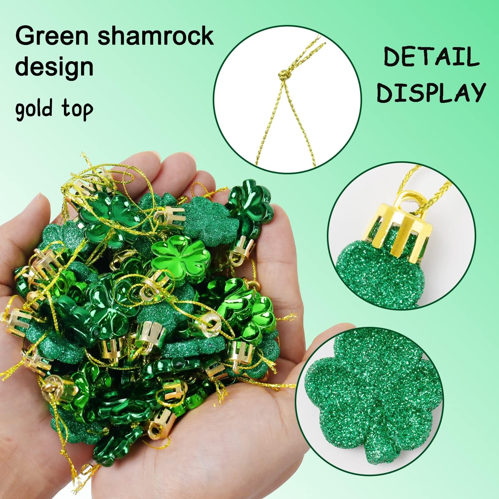 как выглядит St Patricks Day Shamrocks Ornament Set, 48Pcs Good Luck Clover Decorative Hangi фото