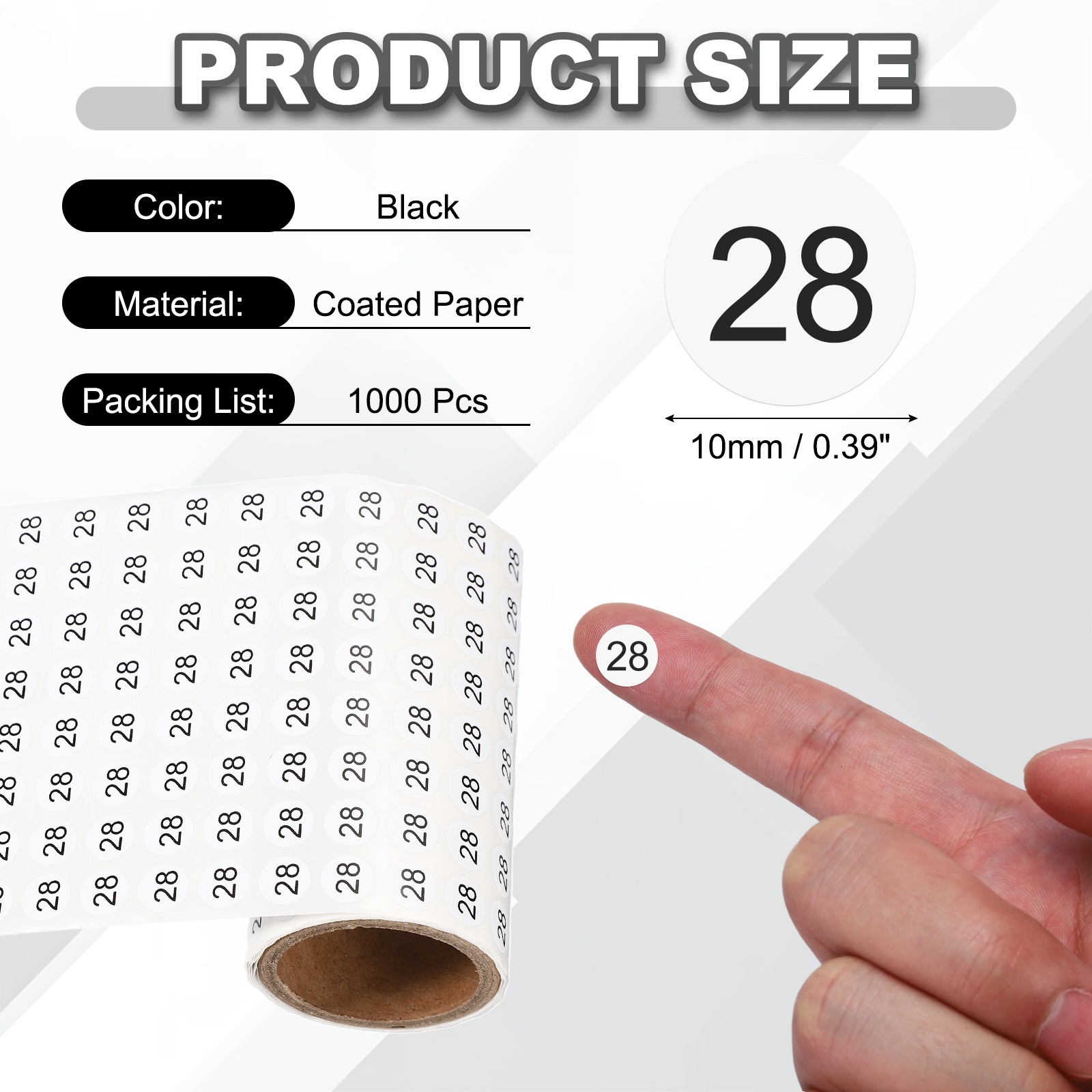 0.4 Small Round Number Stickers Roll, 1000 Pcs Circle Labels, Black Number 28