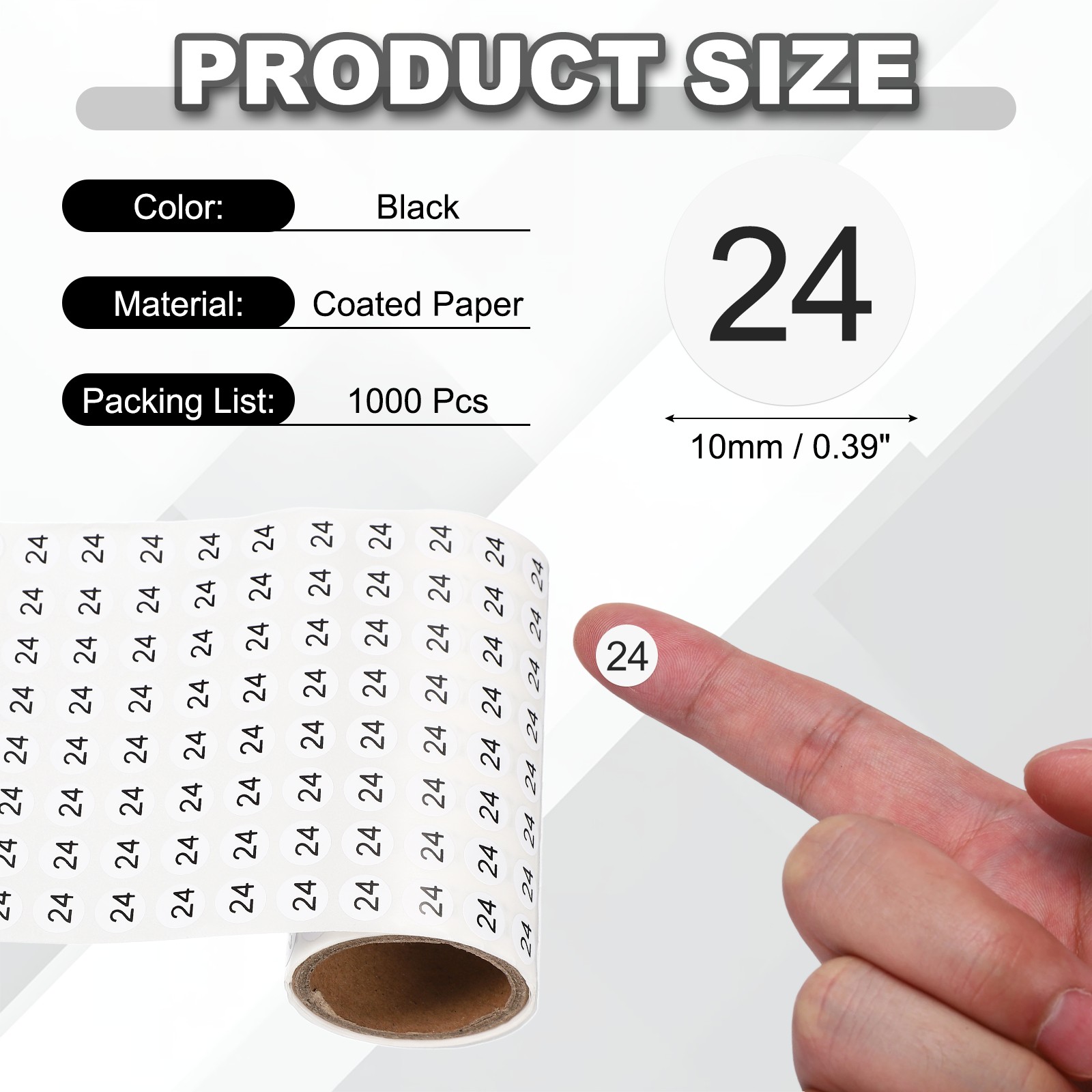 0.4 Small Round Number Stickers Roll, 1000 Pcs Circle Labels, Black Number 24