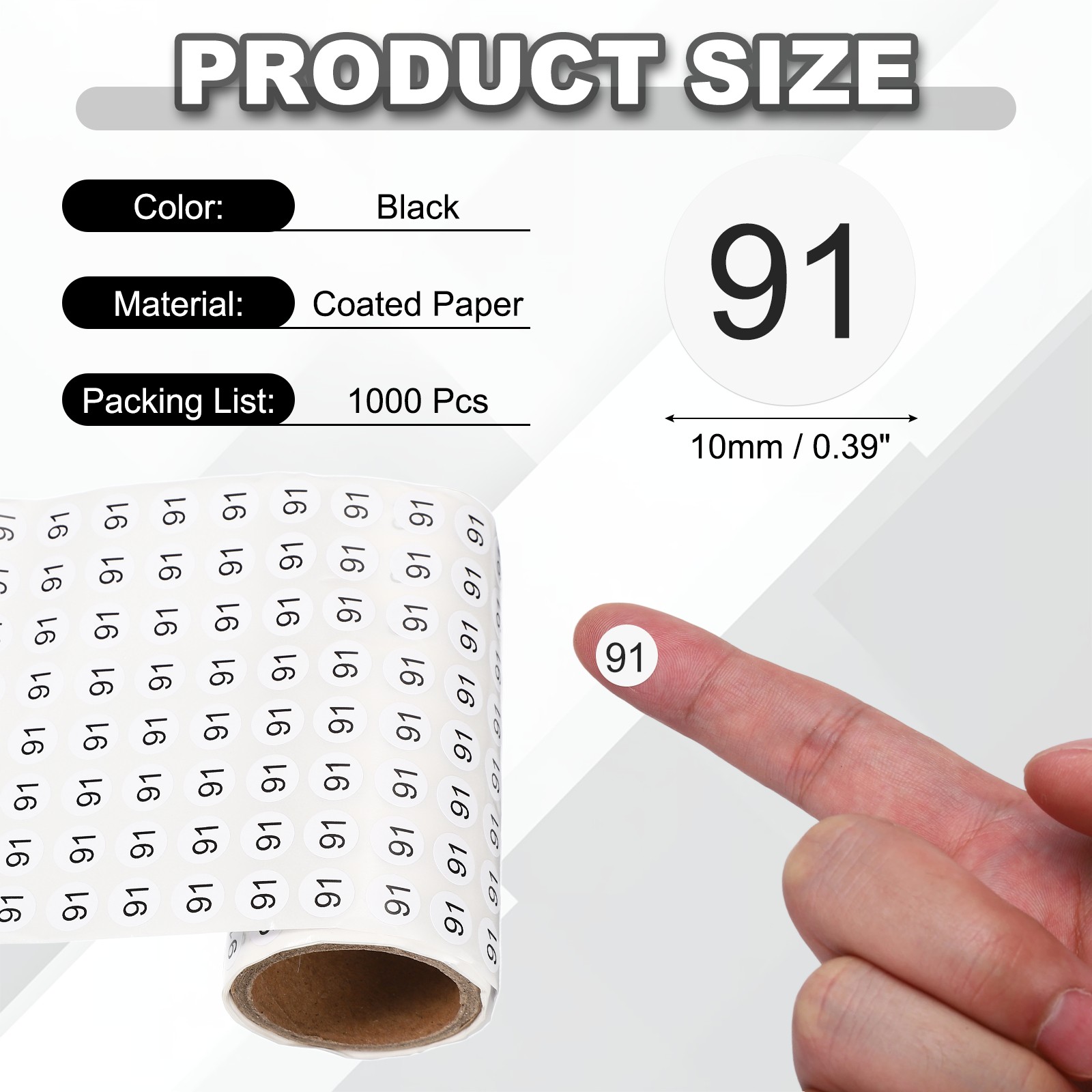 0.4 Small Round Number Stickers Roll, 1000 Pcs Circle Labels, Black Number 91