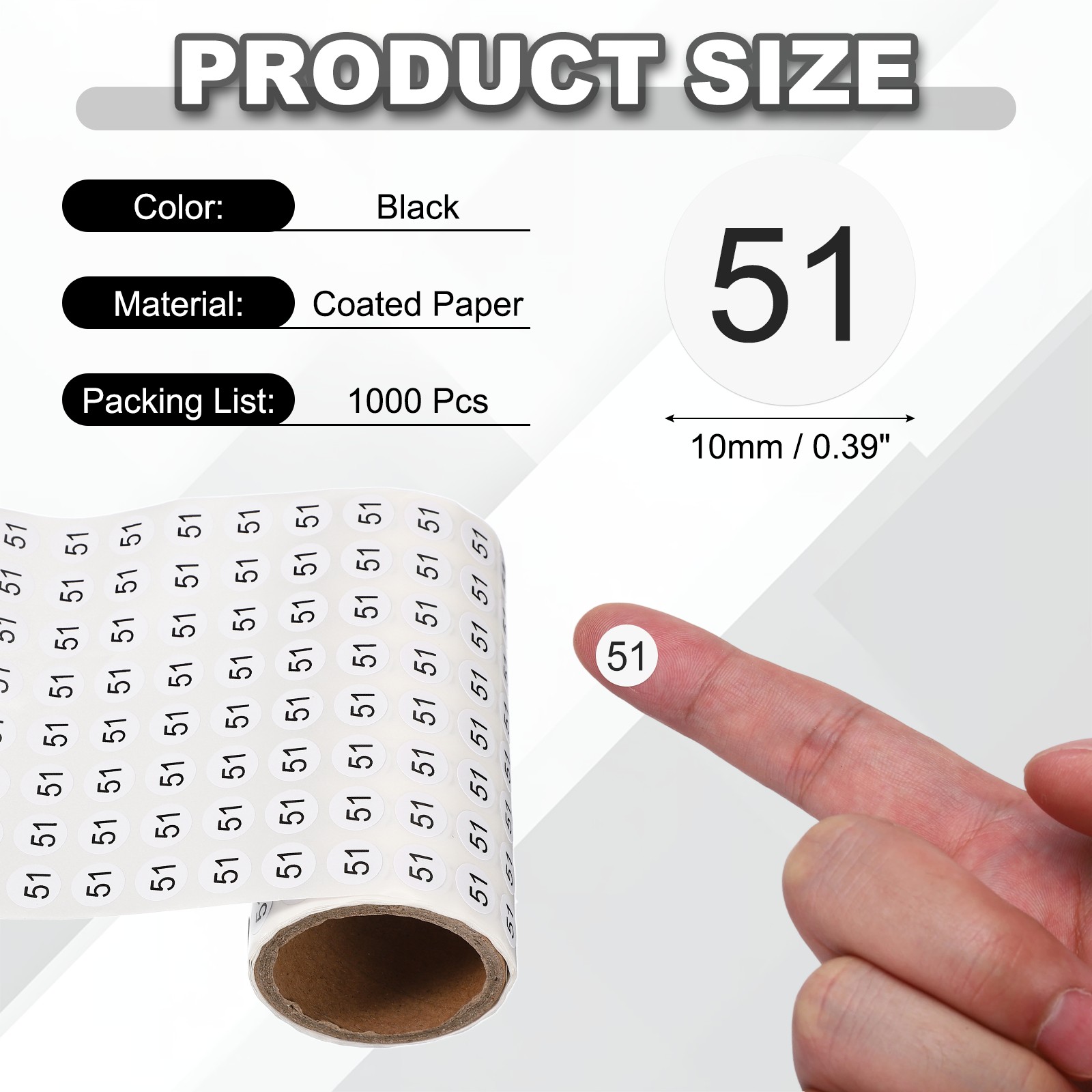 0.4 Small Round Number Stickers Roll, 1000 Pcs Circle Labels, Black Number 51