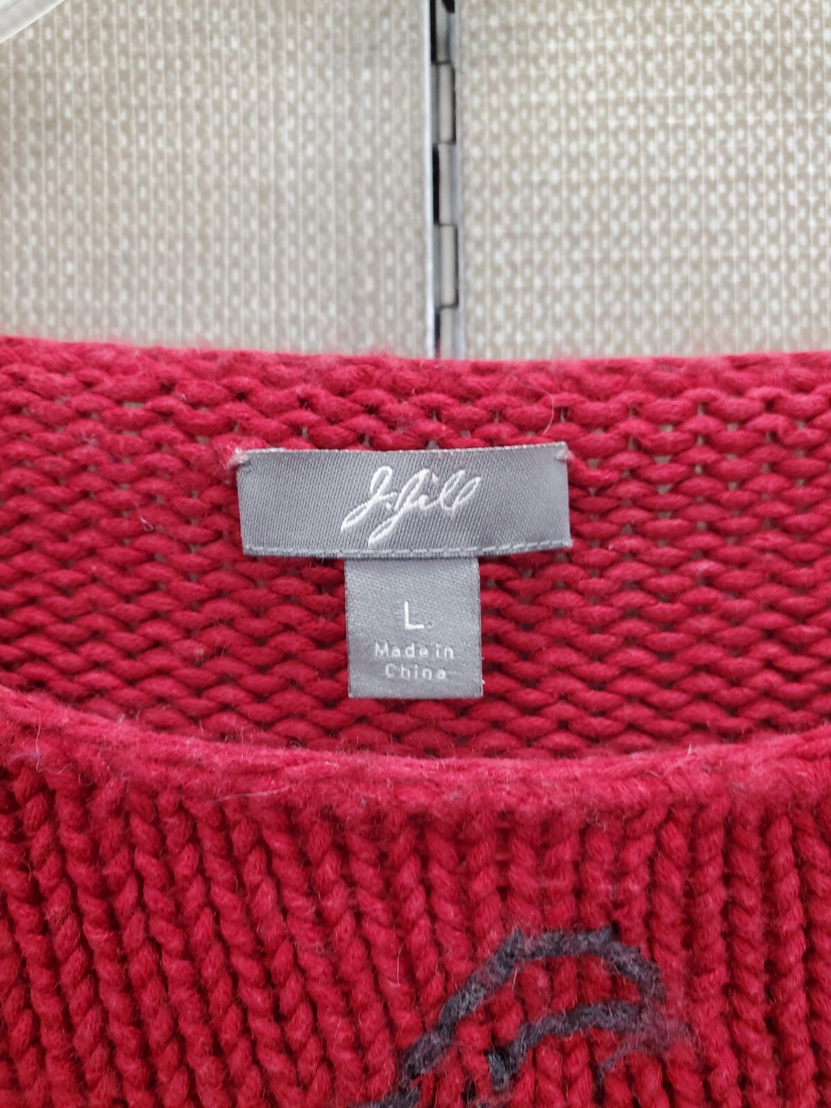 как выглядит J Jill Red Cotton/Wool Blend Long Sleeve Pullover Sweater Size Large Piping фото