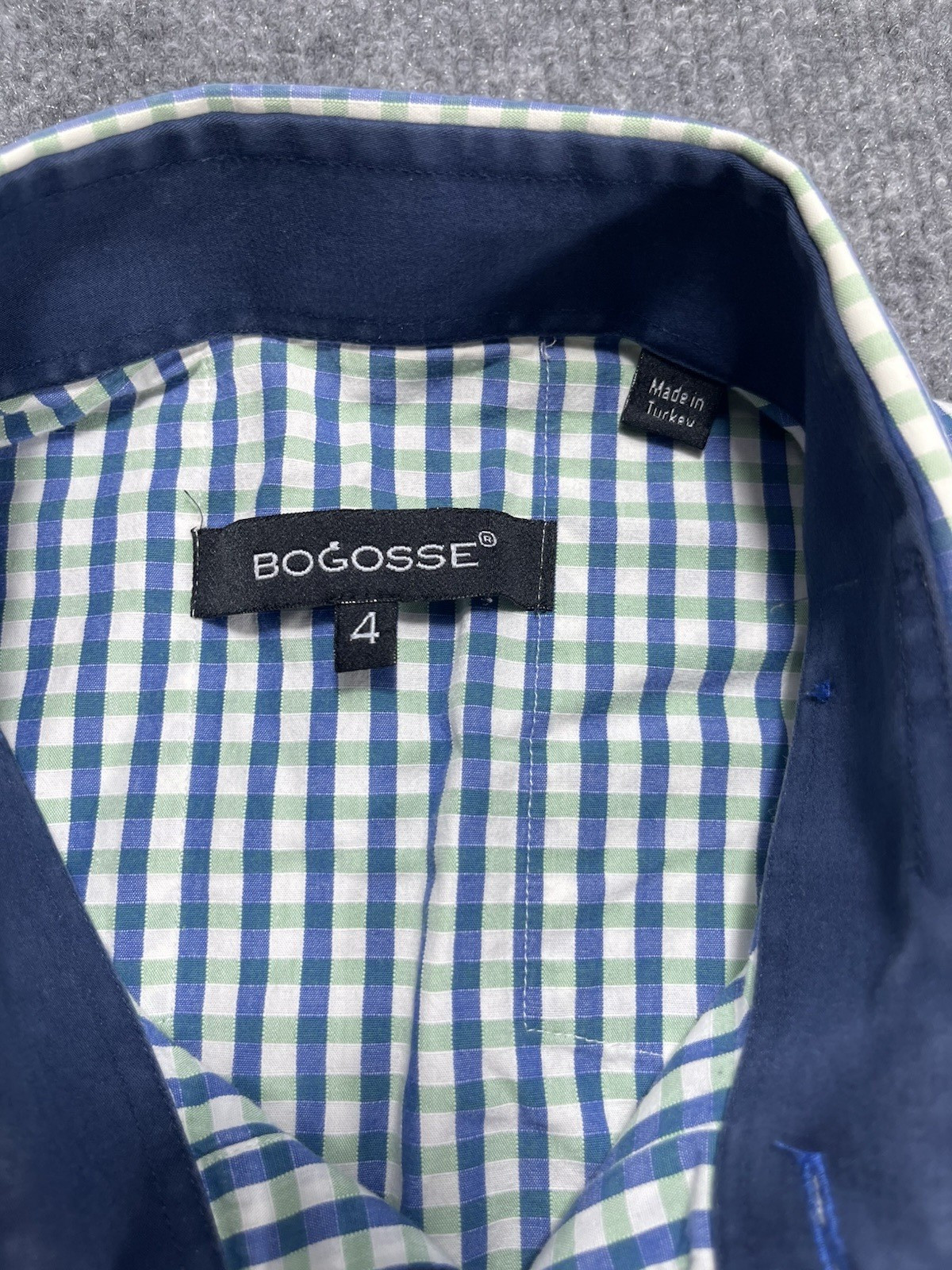 Bogosse Men's Button Up Shirt Size 4 Blue White Check Short Sleeves Casual