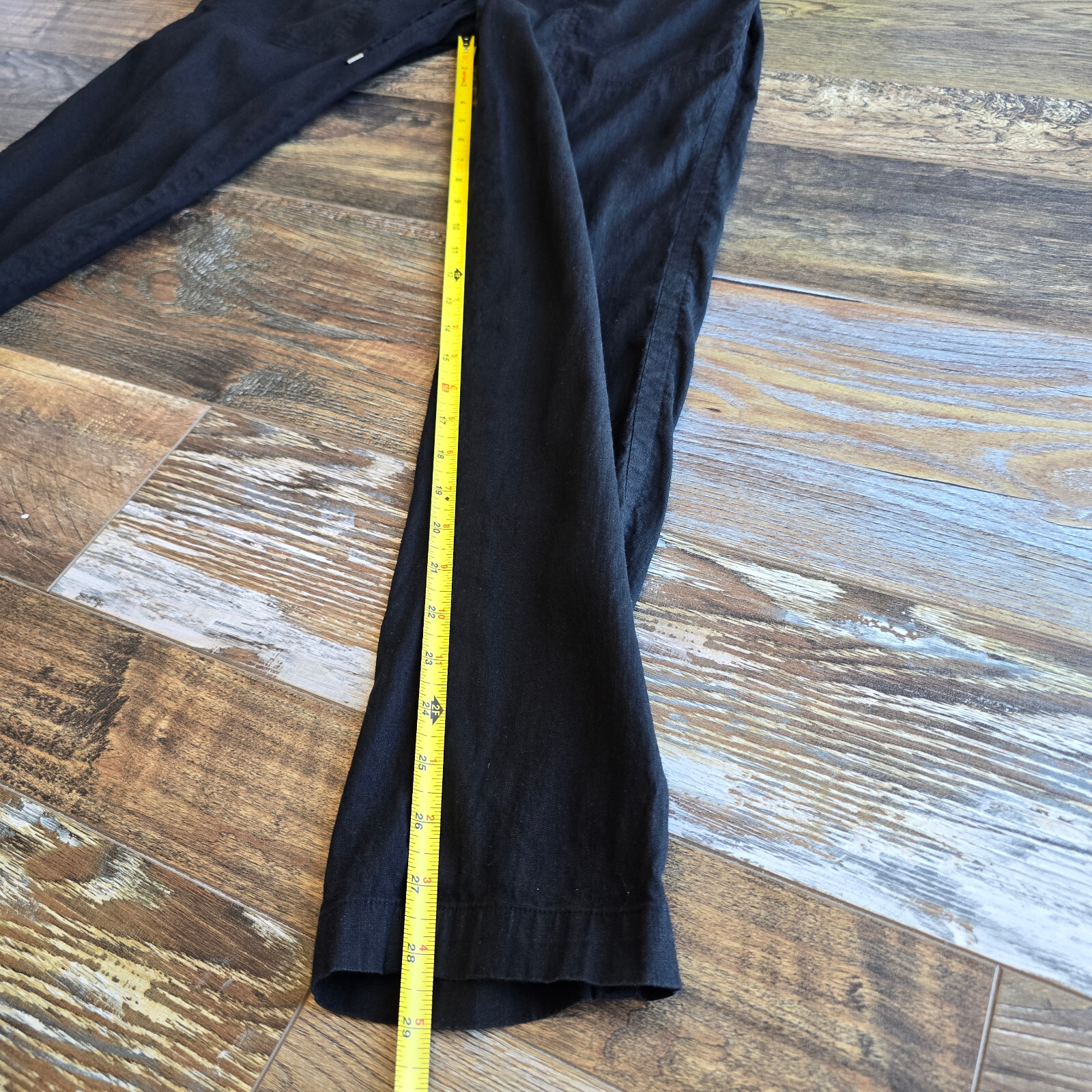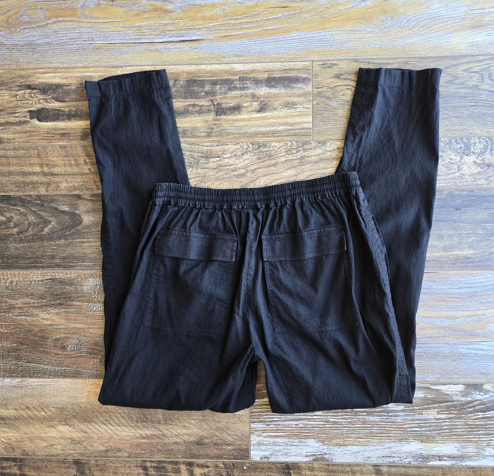 как выглядит Vince Linen Blend Pull-On Pants Elastic Waist Drawstring Pocket Black Womens M фото