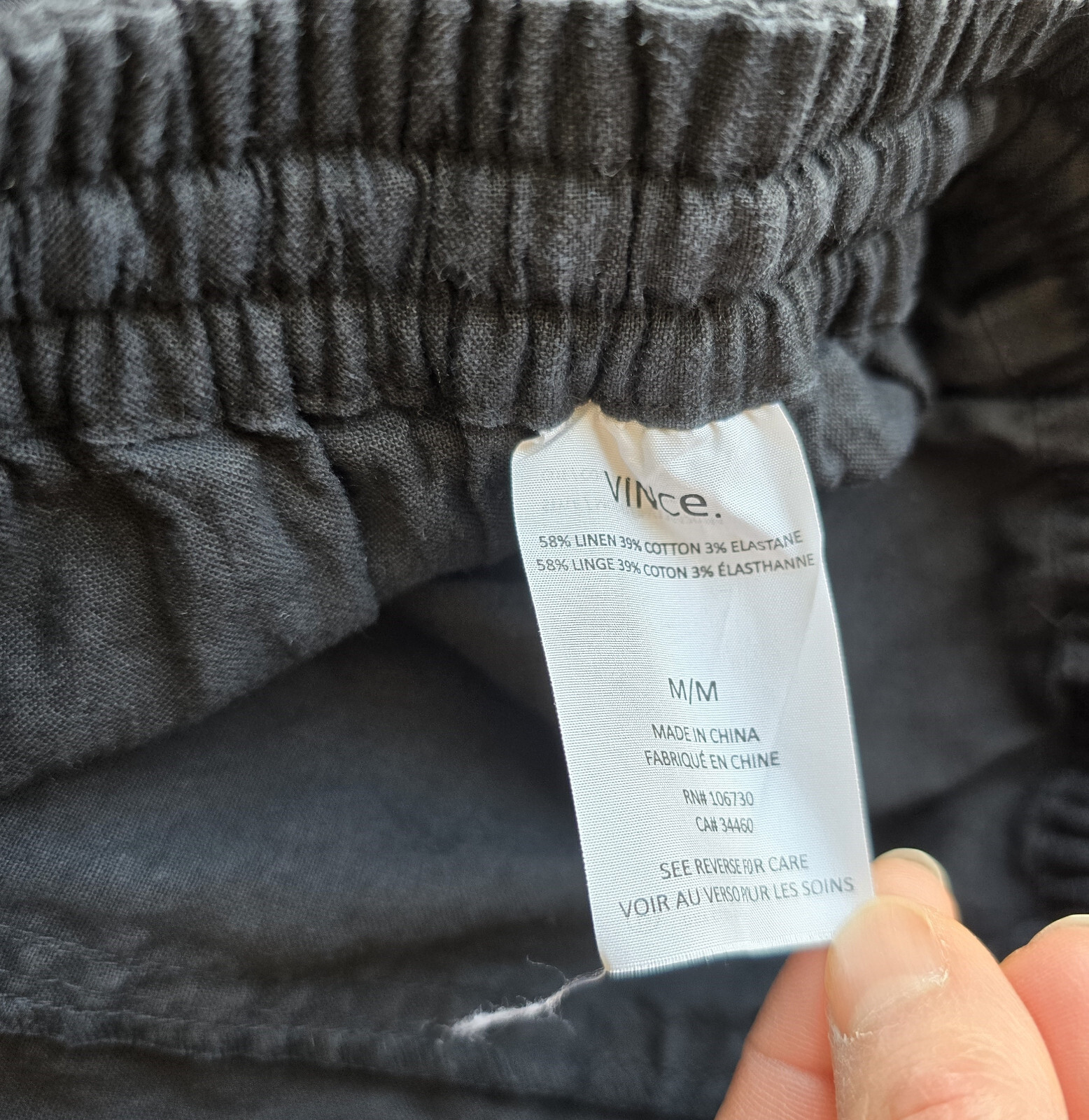 как выглядит Vince Linen Blend Pull-On Pants Elastic Waist Drawstring Pocket Black Women
