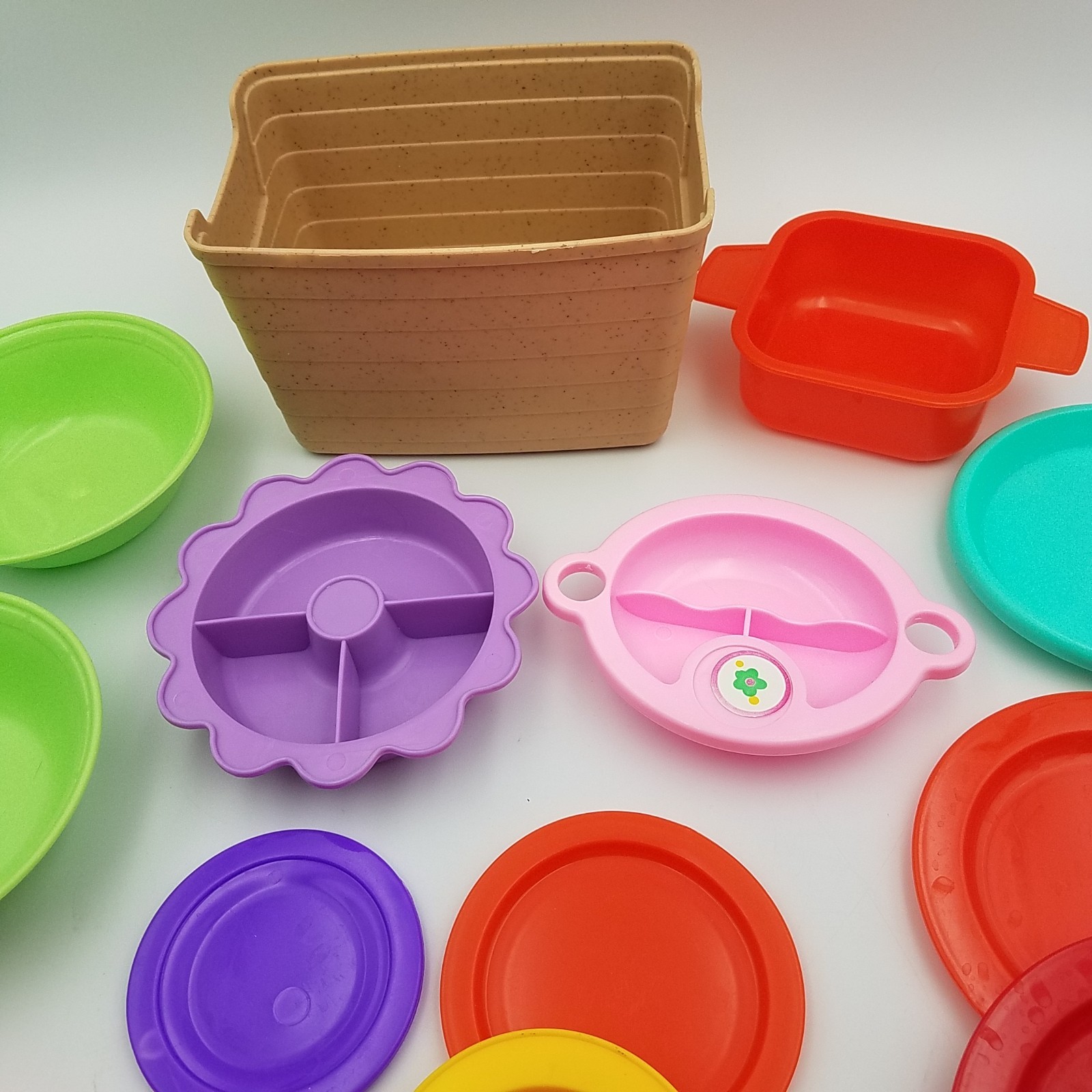 Lot Kids Pretend Play Toy Dishes Plates Bowls Container for Kitchen Colors
