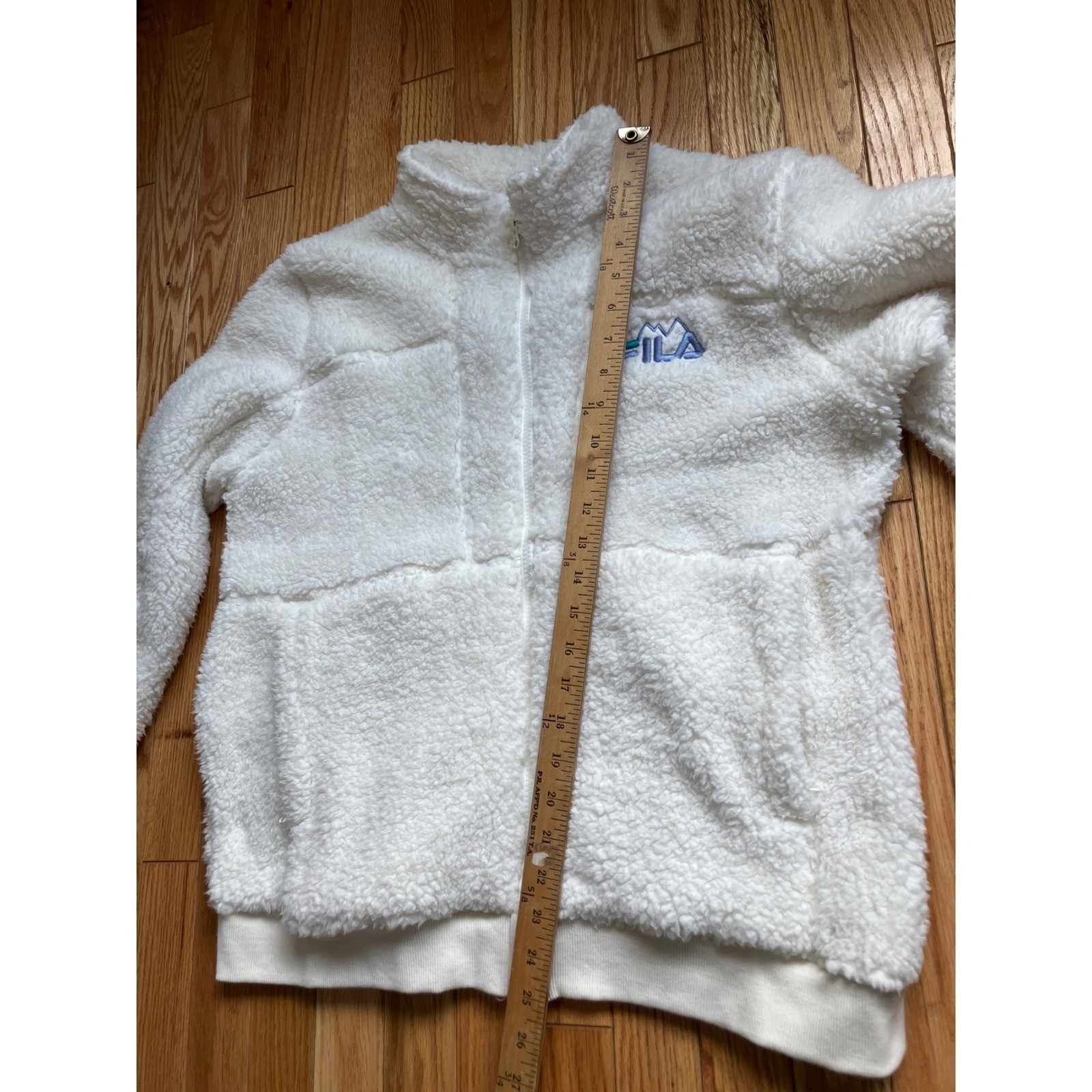 как выглядит Fila Sherpa Fleece Jacket White Full Zip Mock Neck Logo Size Medium фото
