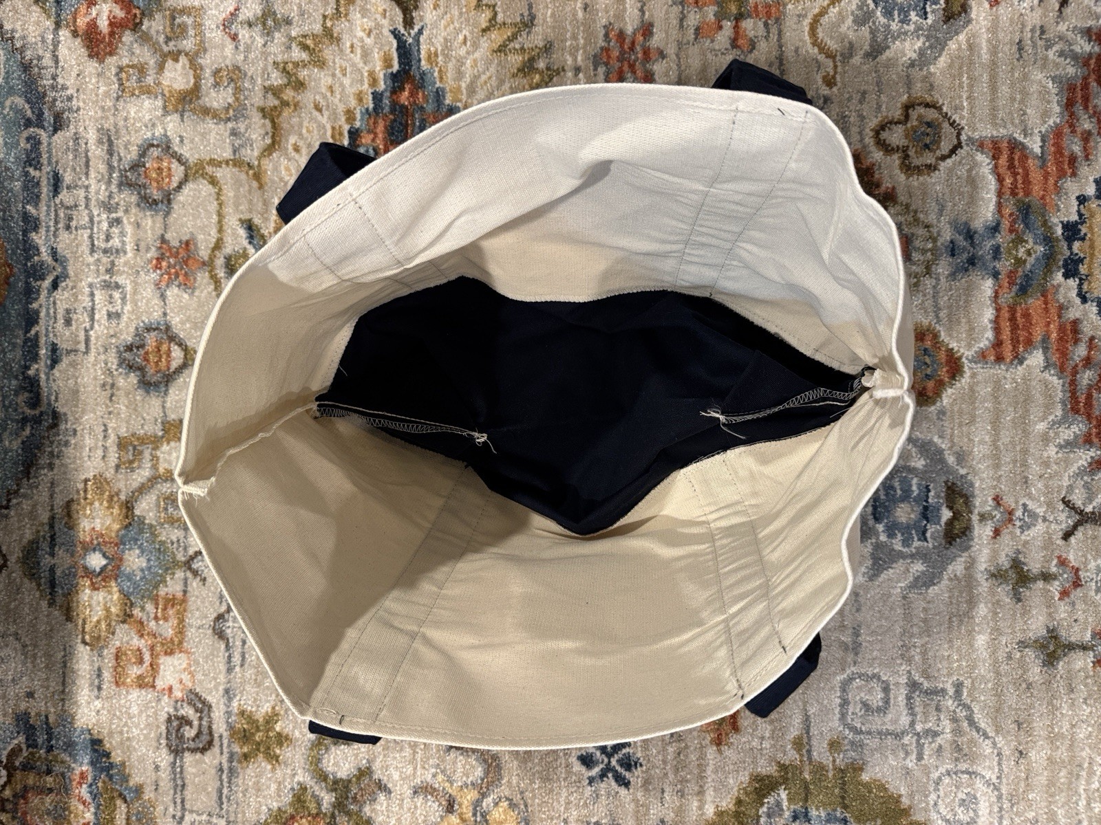 как выглядит Trader Joe s Large Navy Blue Tote Bag Canvas Reusable Shopping Handles Cotton фото