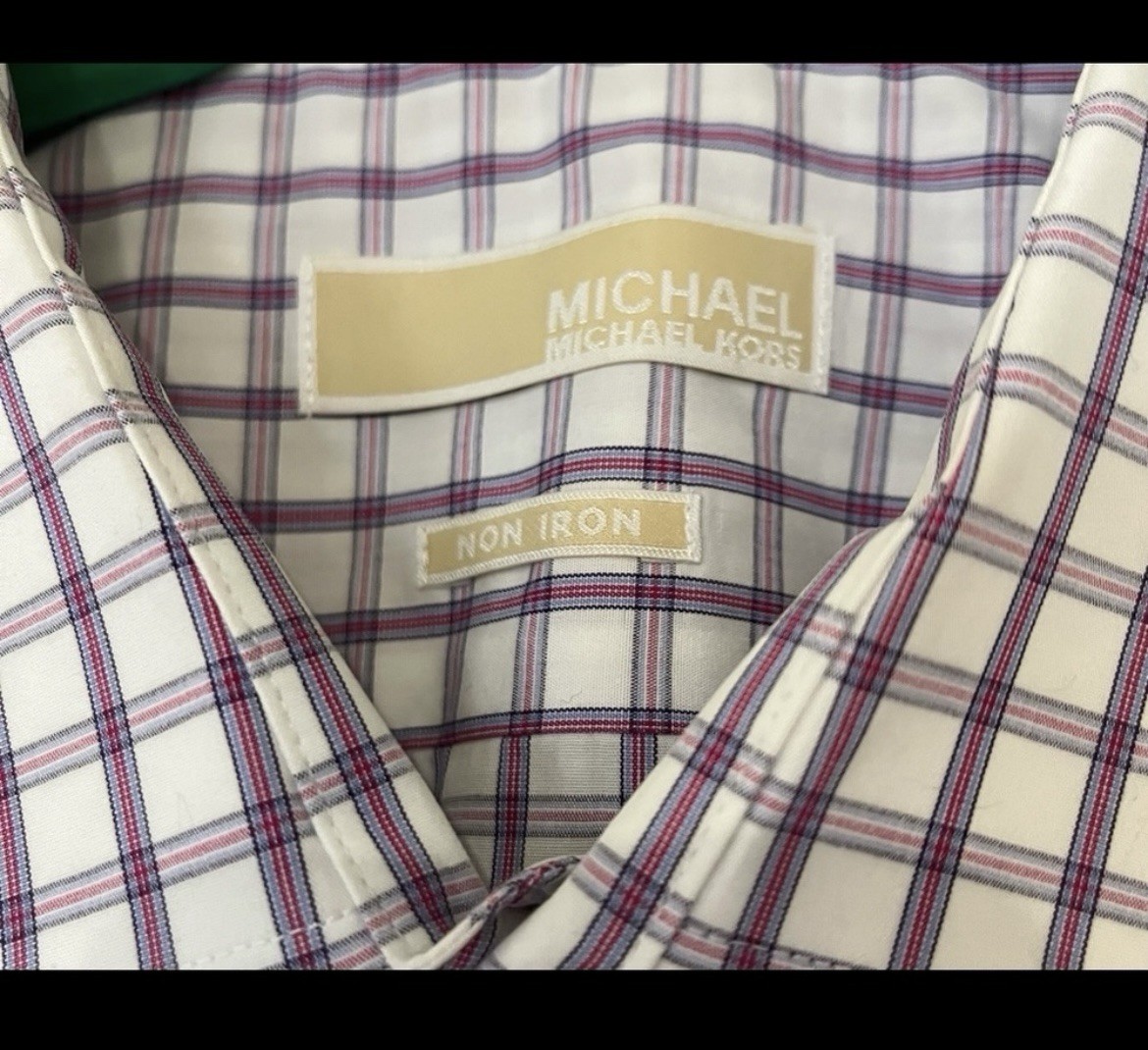 как выглядит Michael Kors mens plaid Non-Iron button down dress shirt 17 1/2 neck 34-35 Arm фото