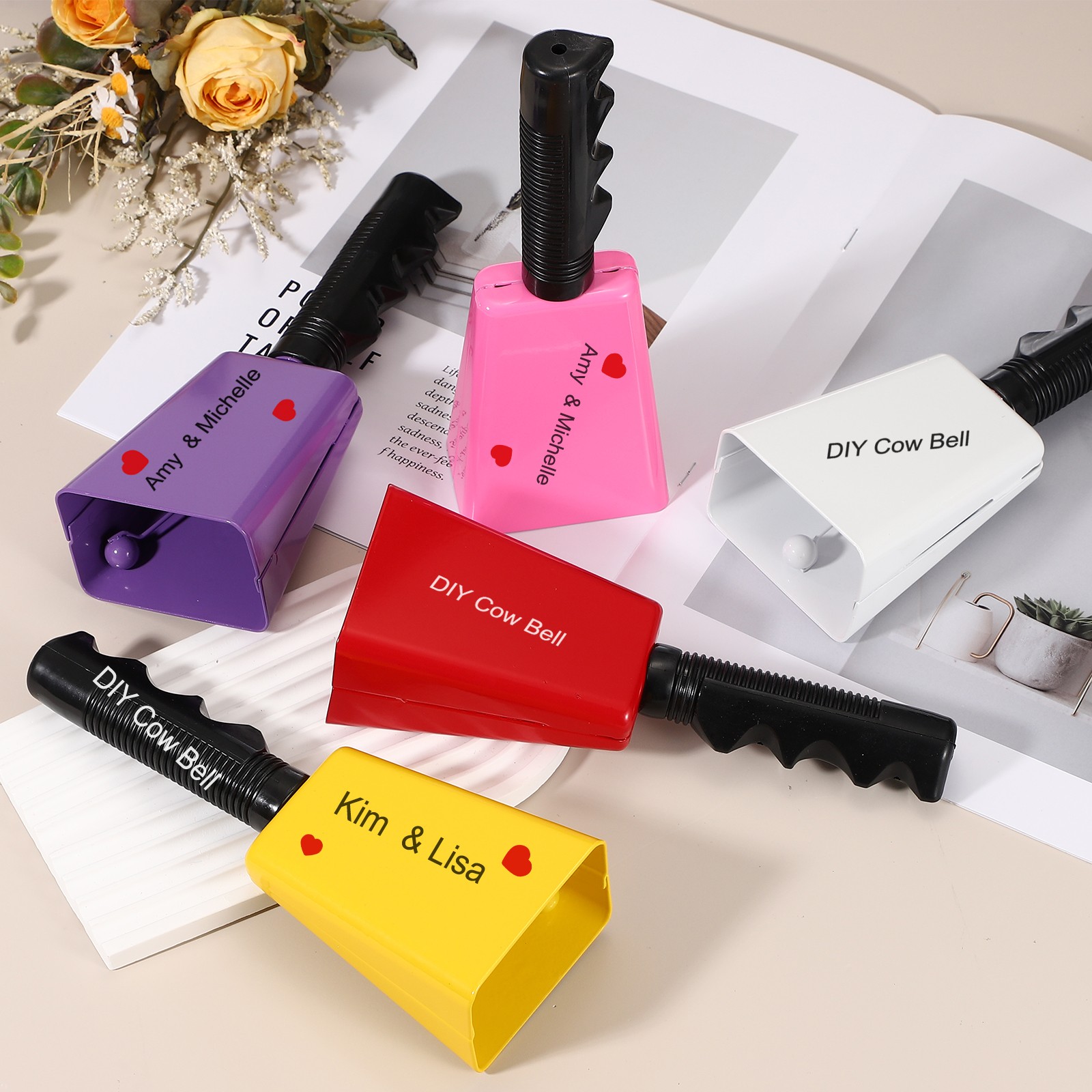 8inch Cow Bells for Football Games, 6pcs Cowbells for Sporting Events, Red