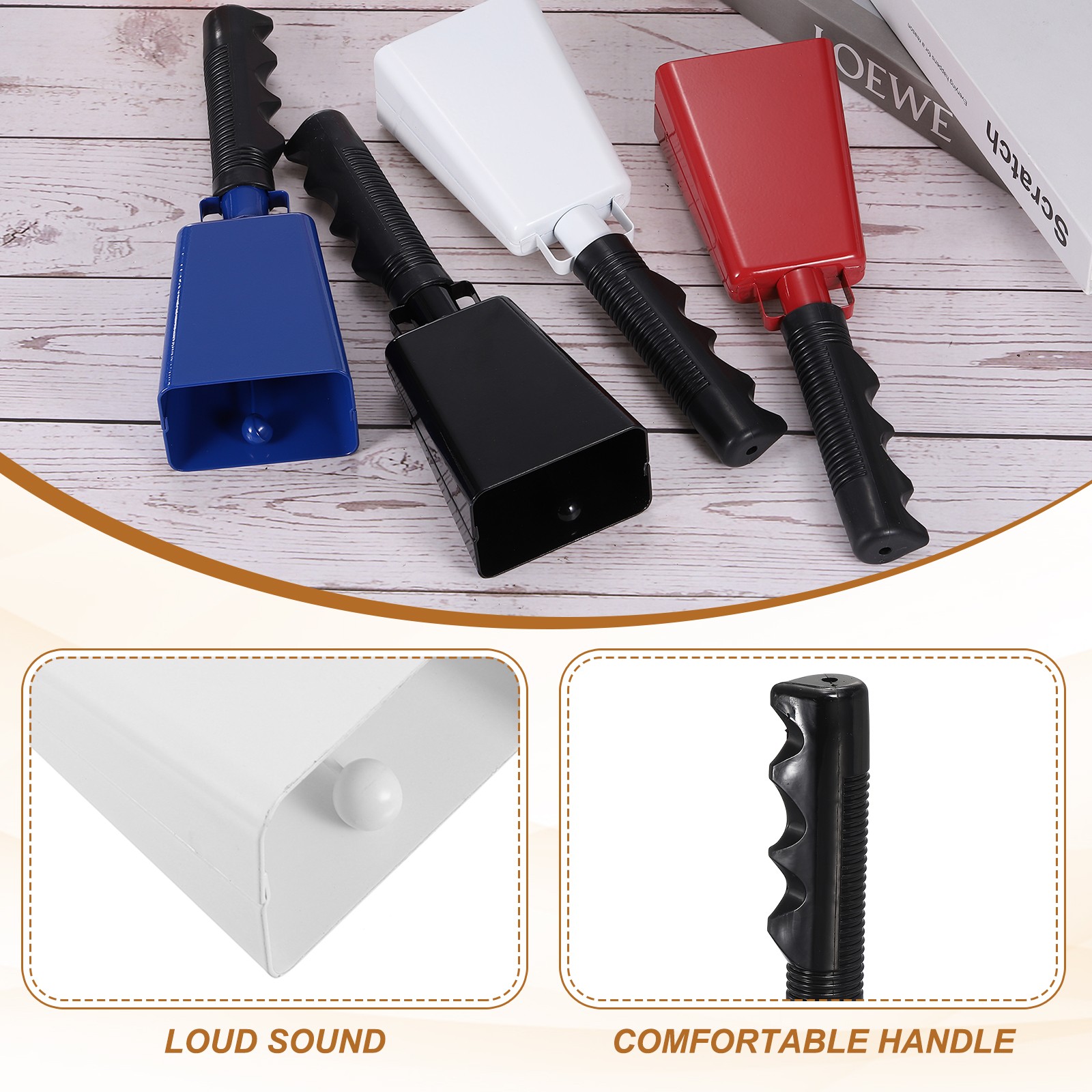как выглядит 9" Cow Bells for Football Games, 2Pcs Cowbells with Wrist Strap, Black фото