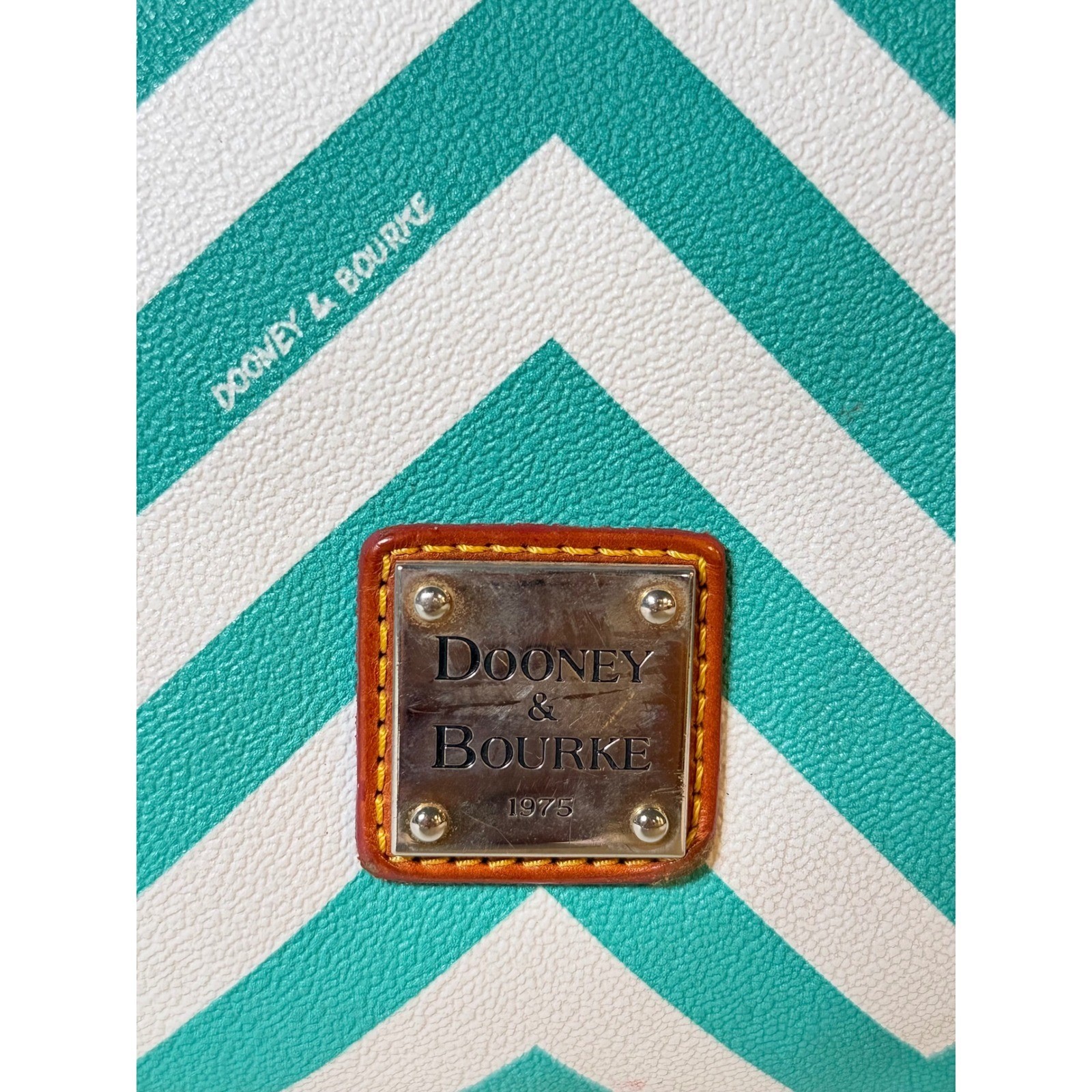 как выглядит Dooney Bourke Chevron Tote Bag Teal White Leather Trim Large Shoulder Bag фото