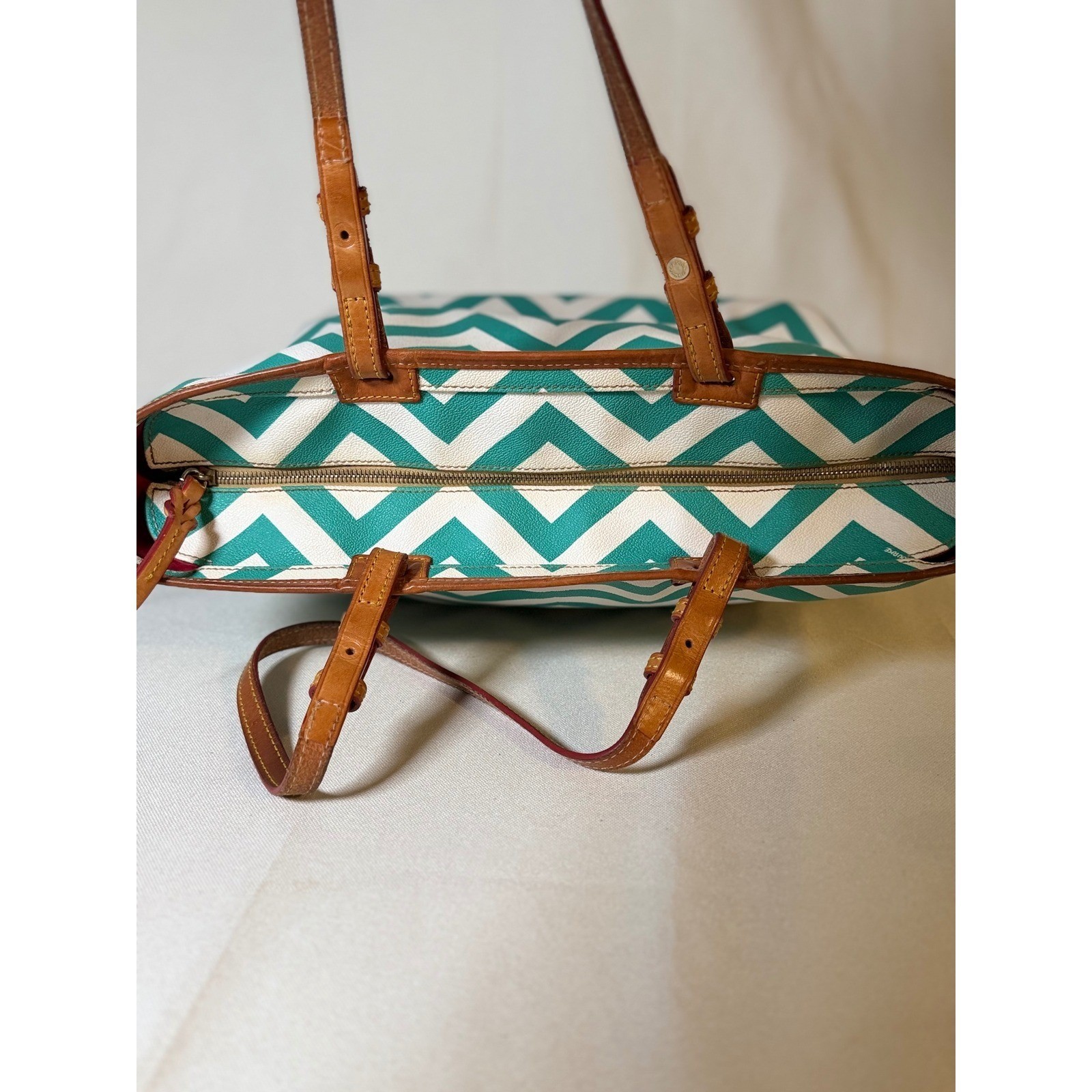 Dooney Bourke Chevron Tote Bag Teal White Leather Trim Large Shoulder Bag